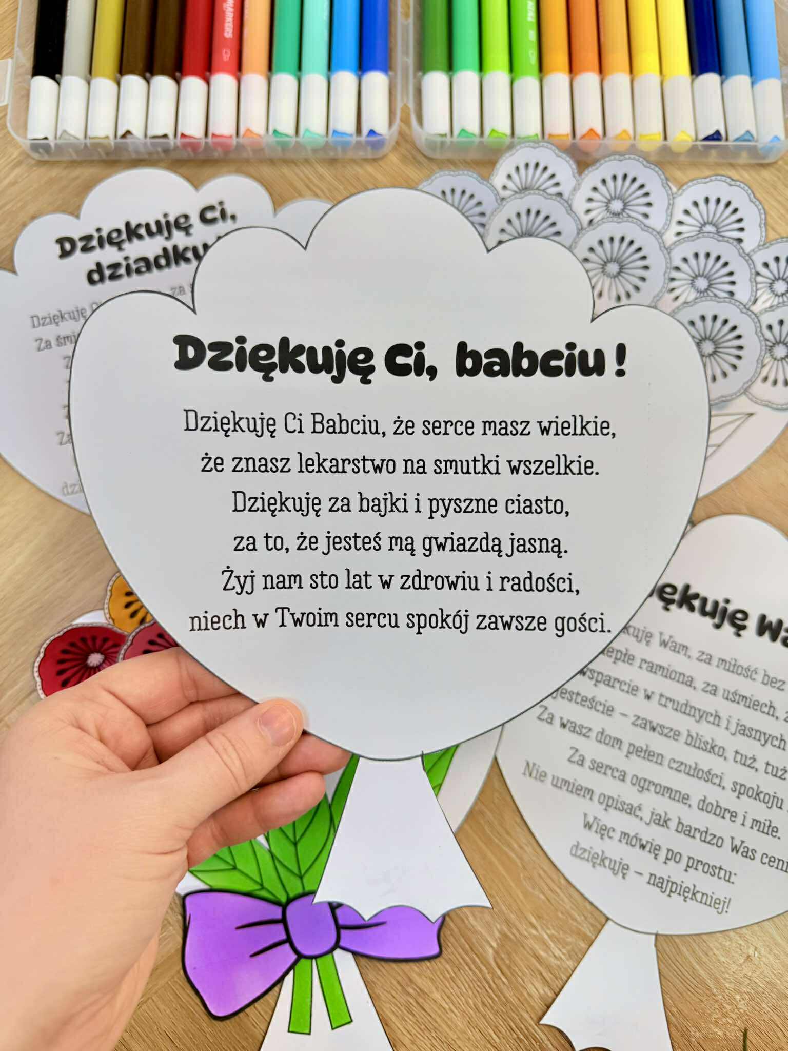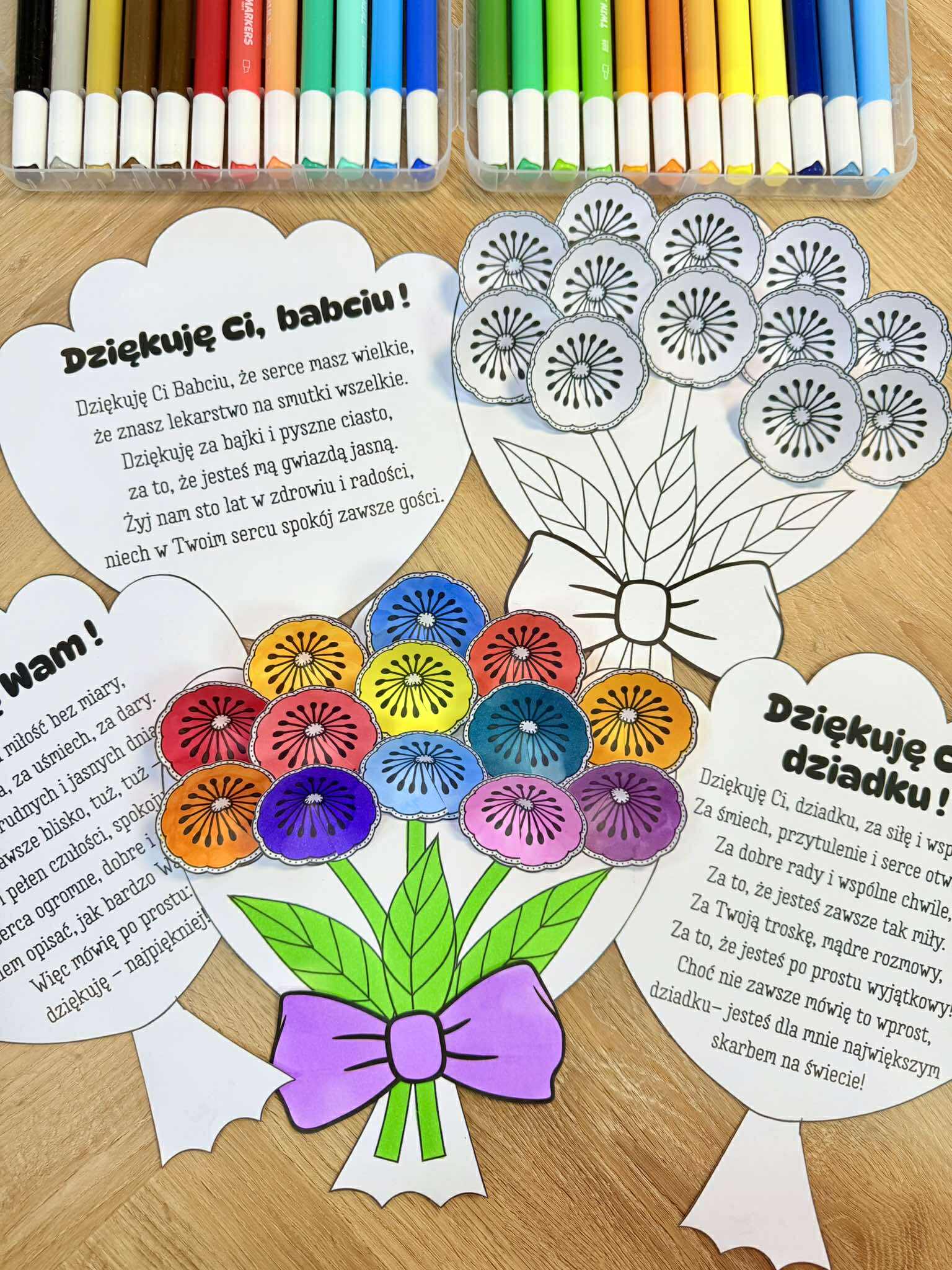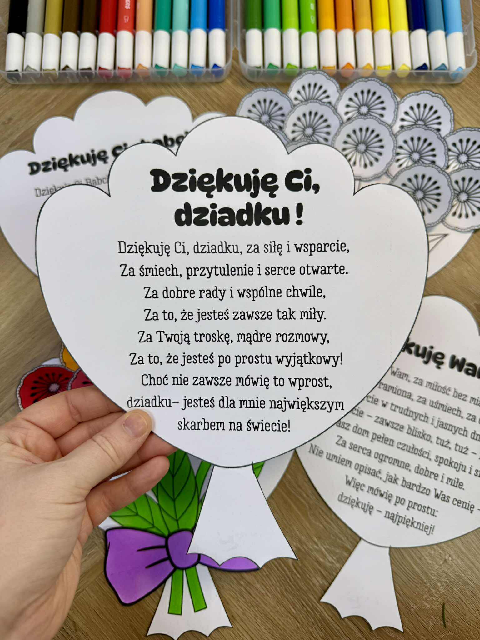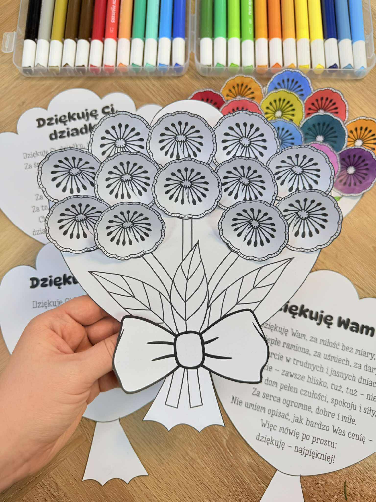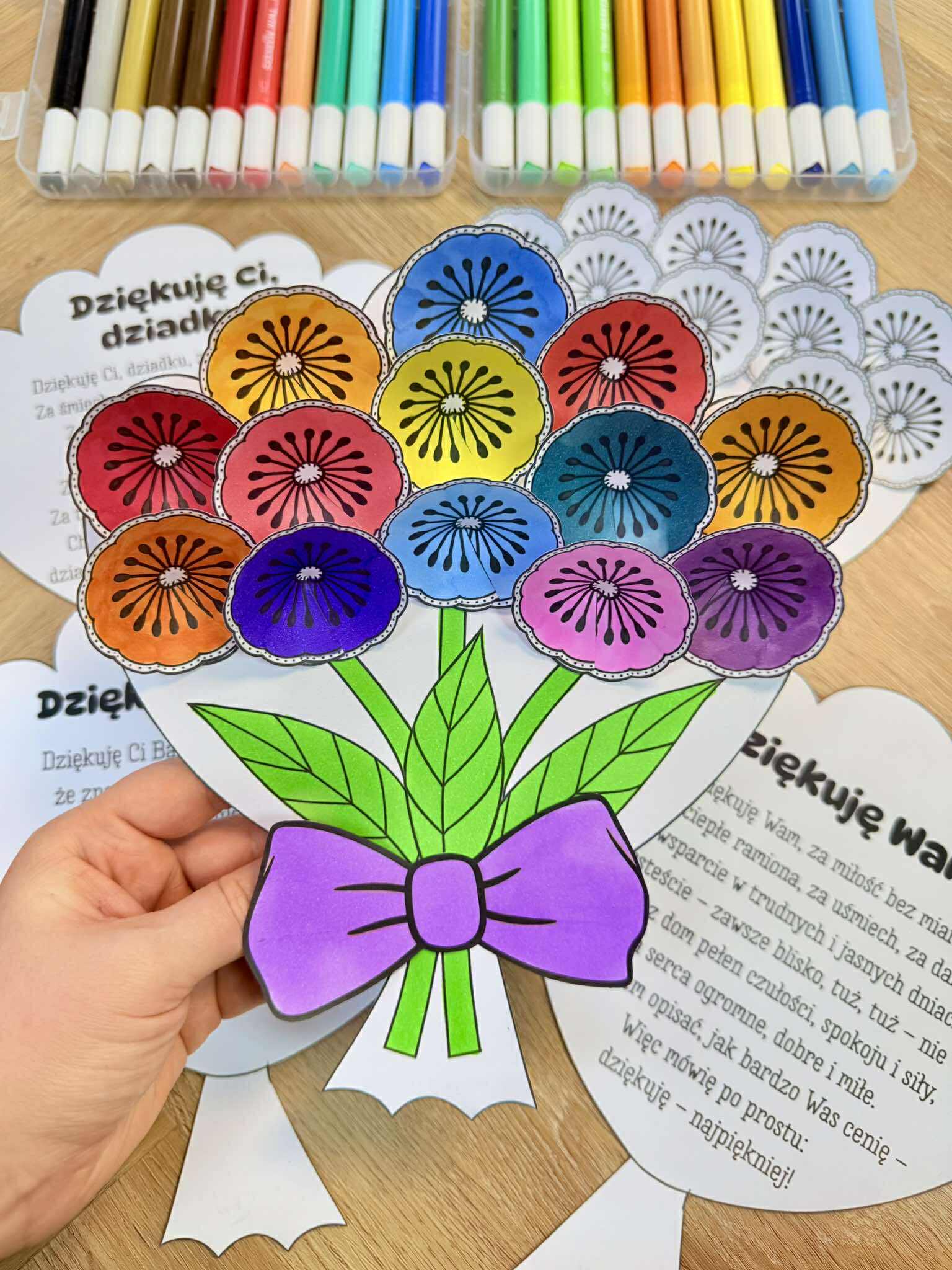 Dzień Babci i Dziadka - Bukiet z kwiatkami 3D i życzeniami.