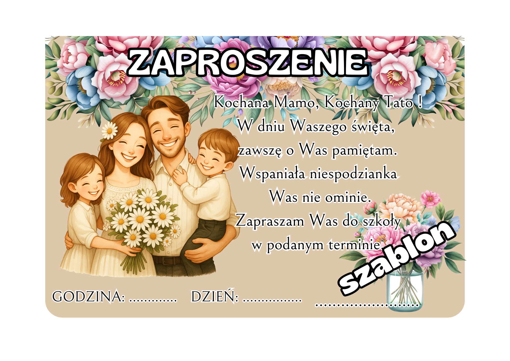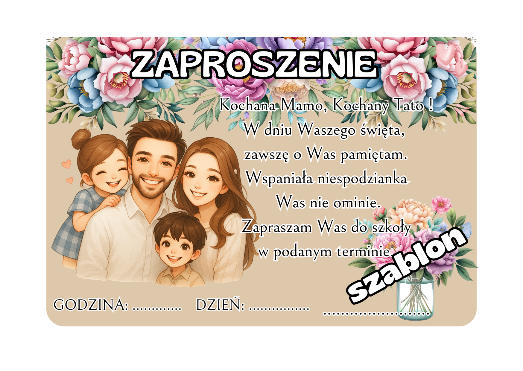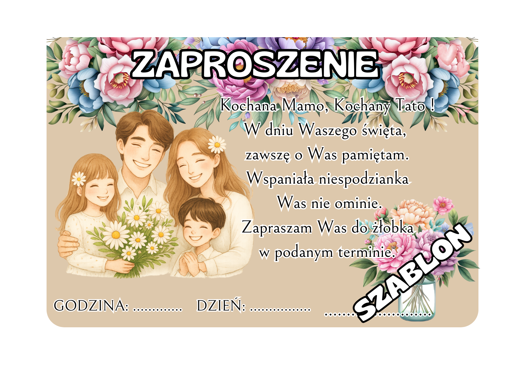 Zaproszenia z Możliwością Edycji Tekstu ( wzór 2) - Dzień Mamy i Taty/ Dzień Rodziny