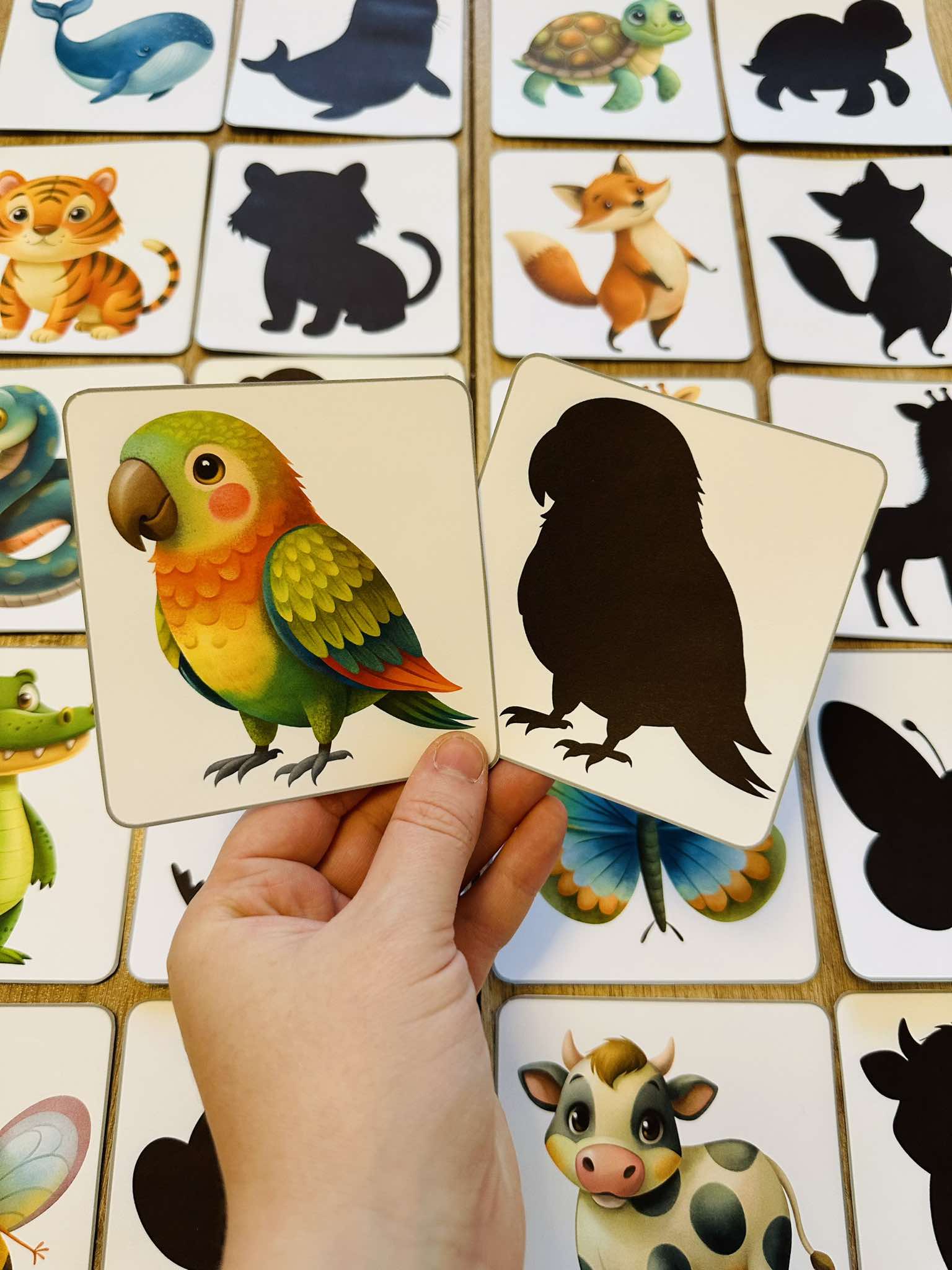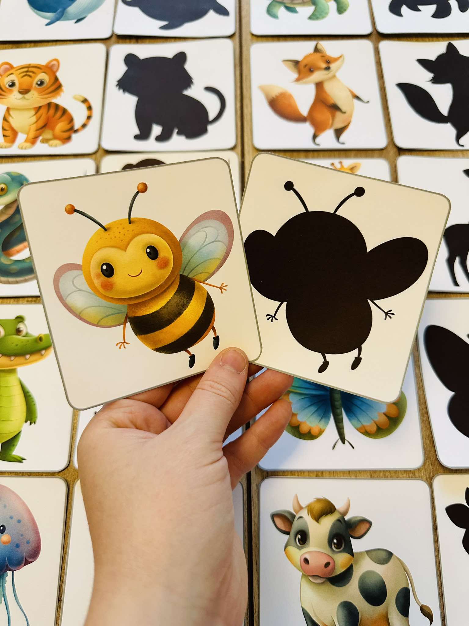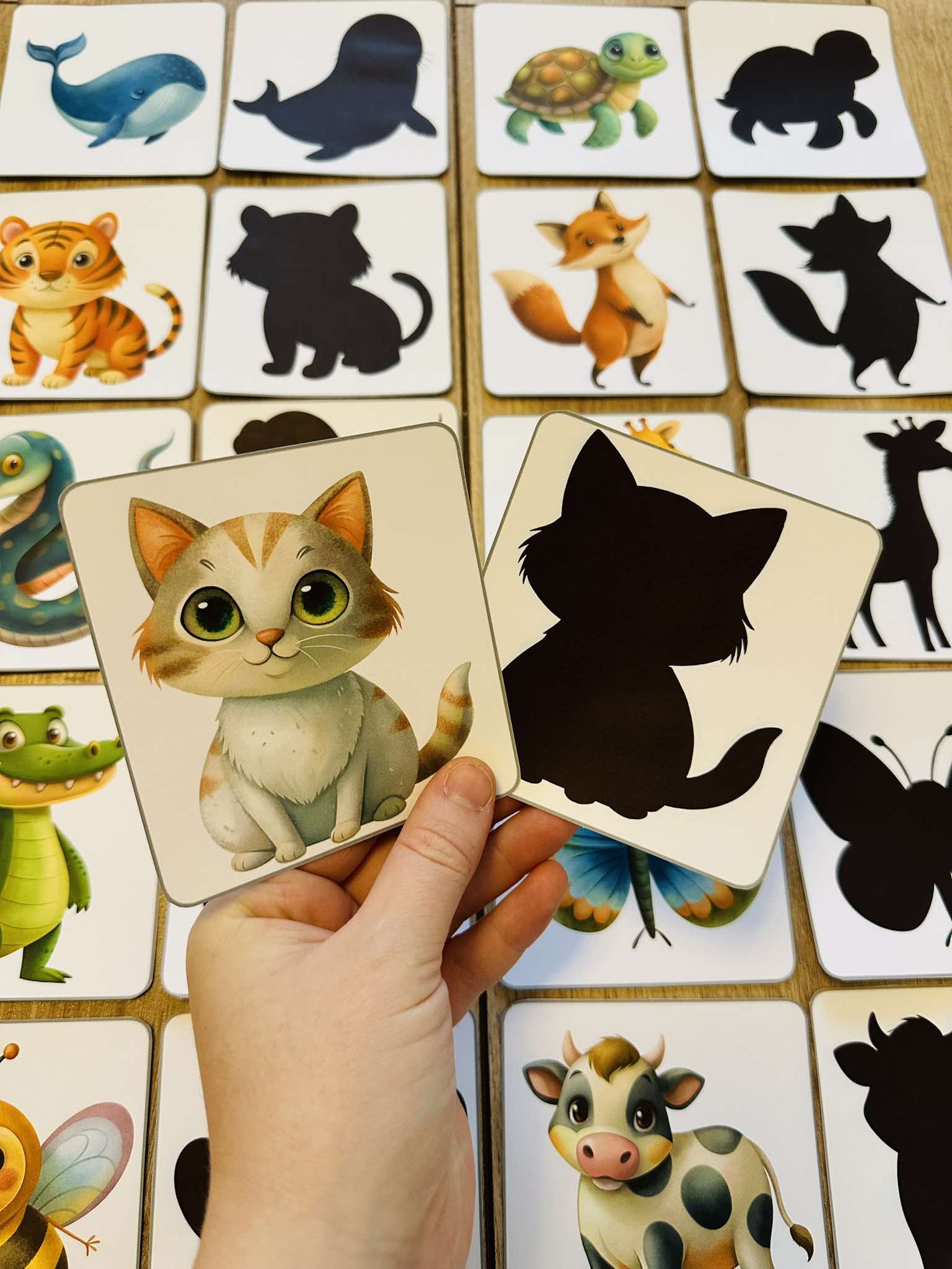 Zadaniem dzieci jest dopasowanie zwierzątek do odpowiedniego cienia.