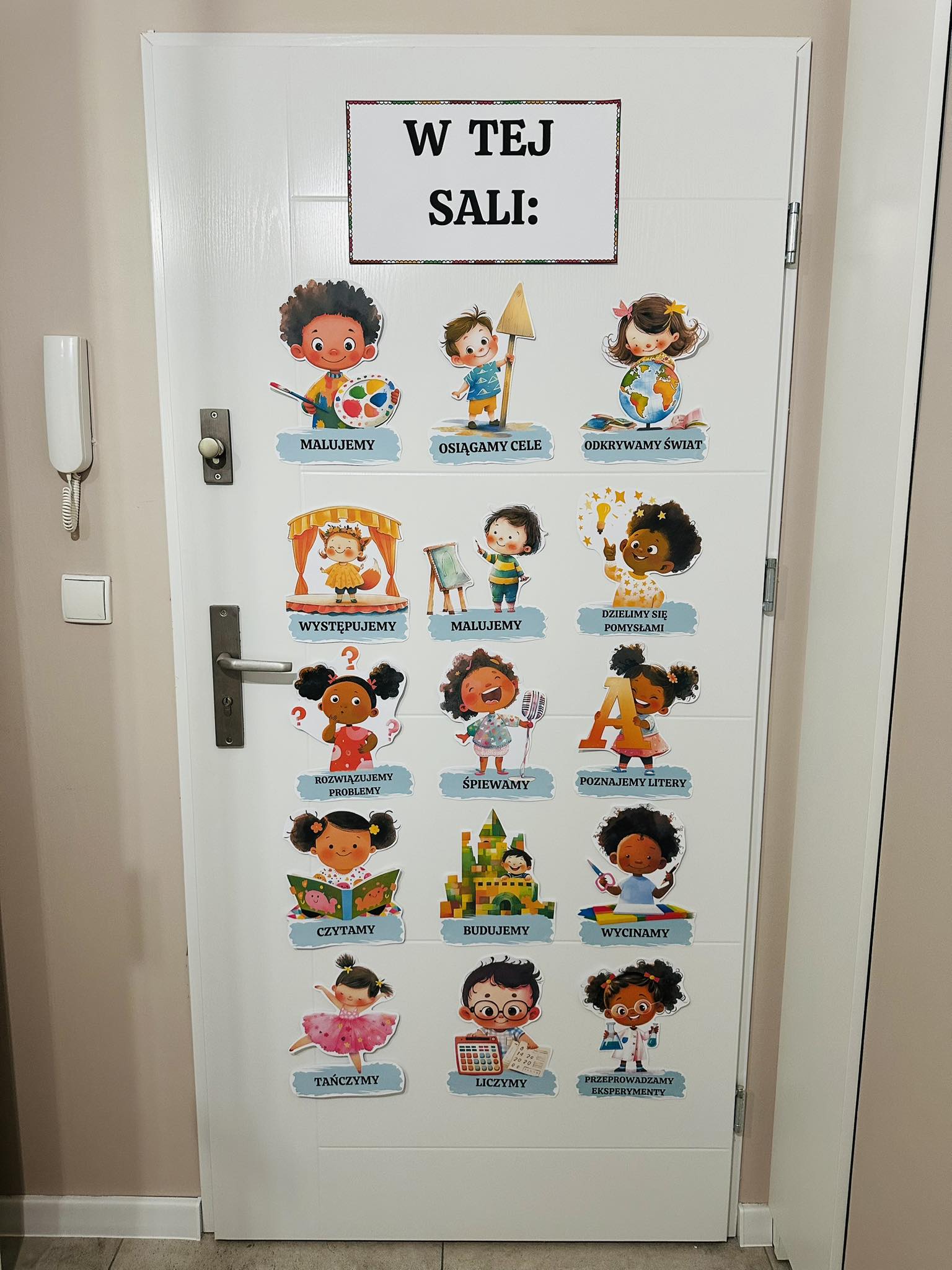 W tej sali/ grupie/ klasie / świetlicy- dekoracje na drzwi.