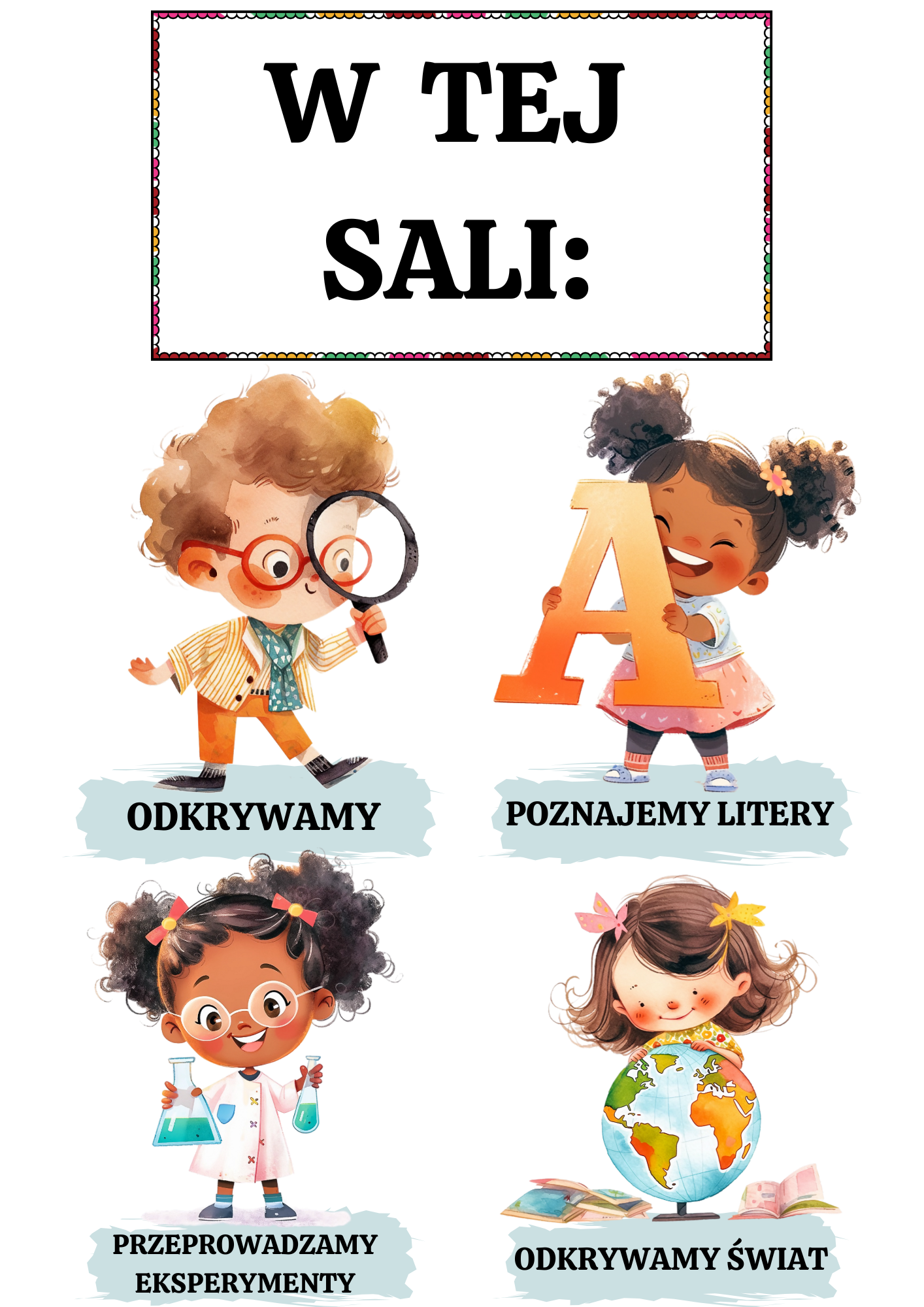 - Tabliczki z napisami w tej sali/ klasie/ grupie/ świetlicy