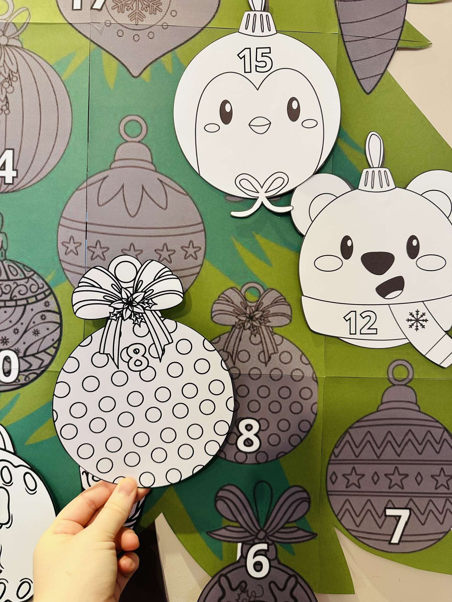 Każda z bombek posiada cyferkę do której należy ja dopasować.