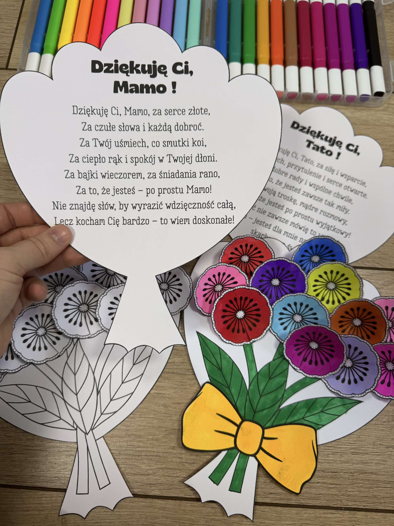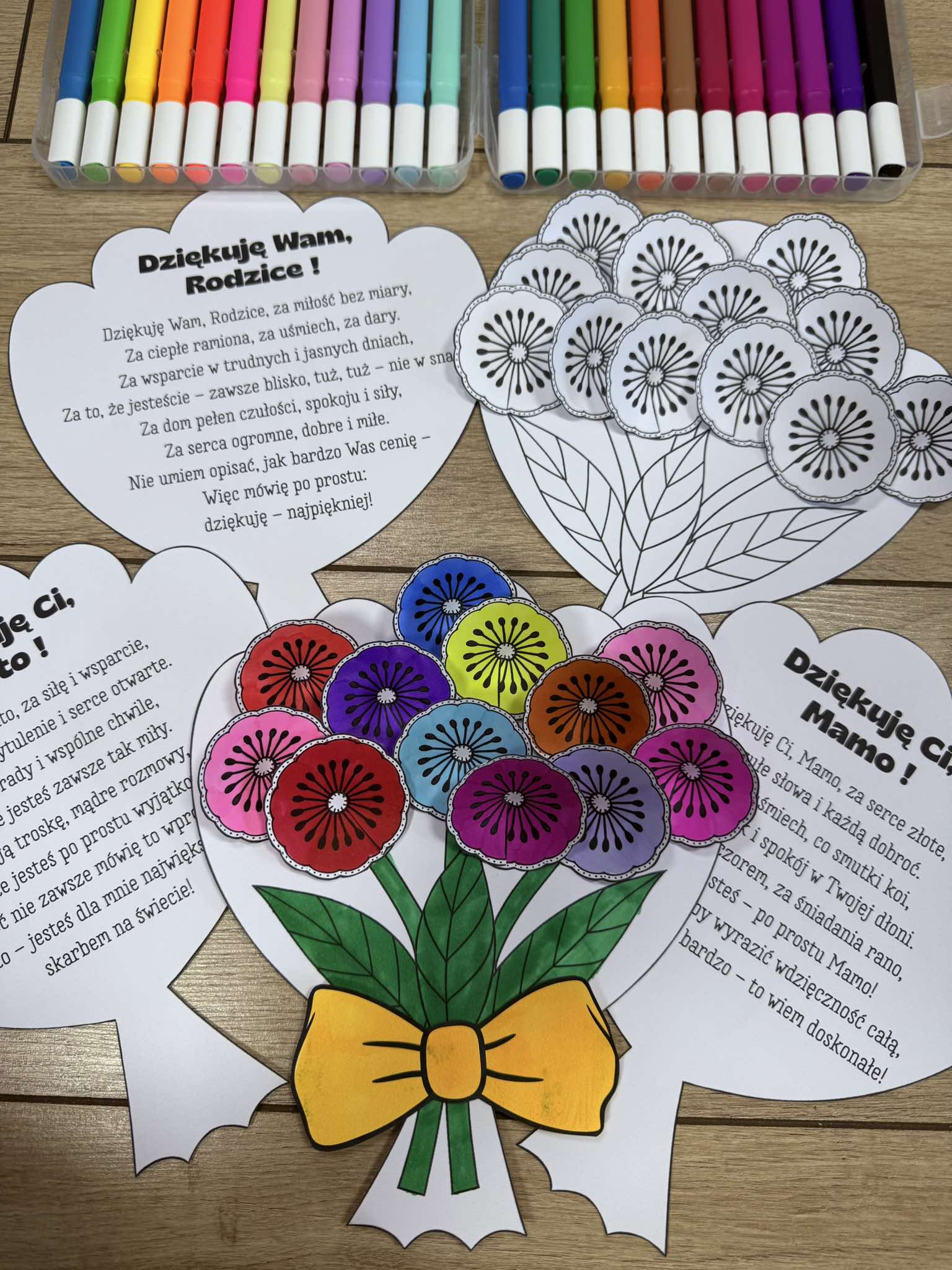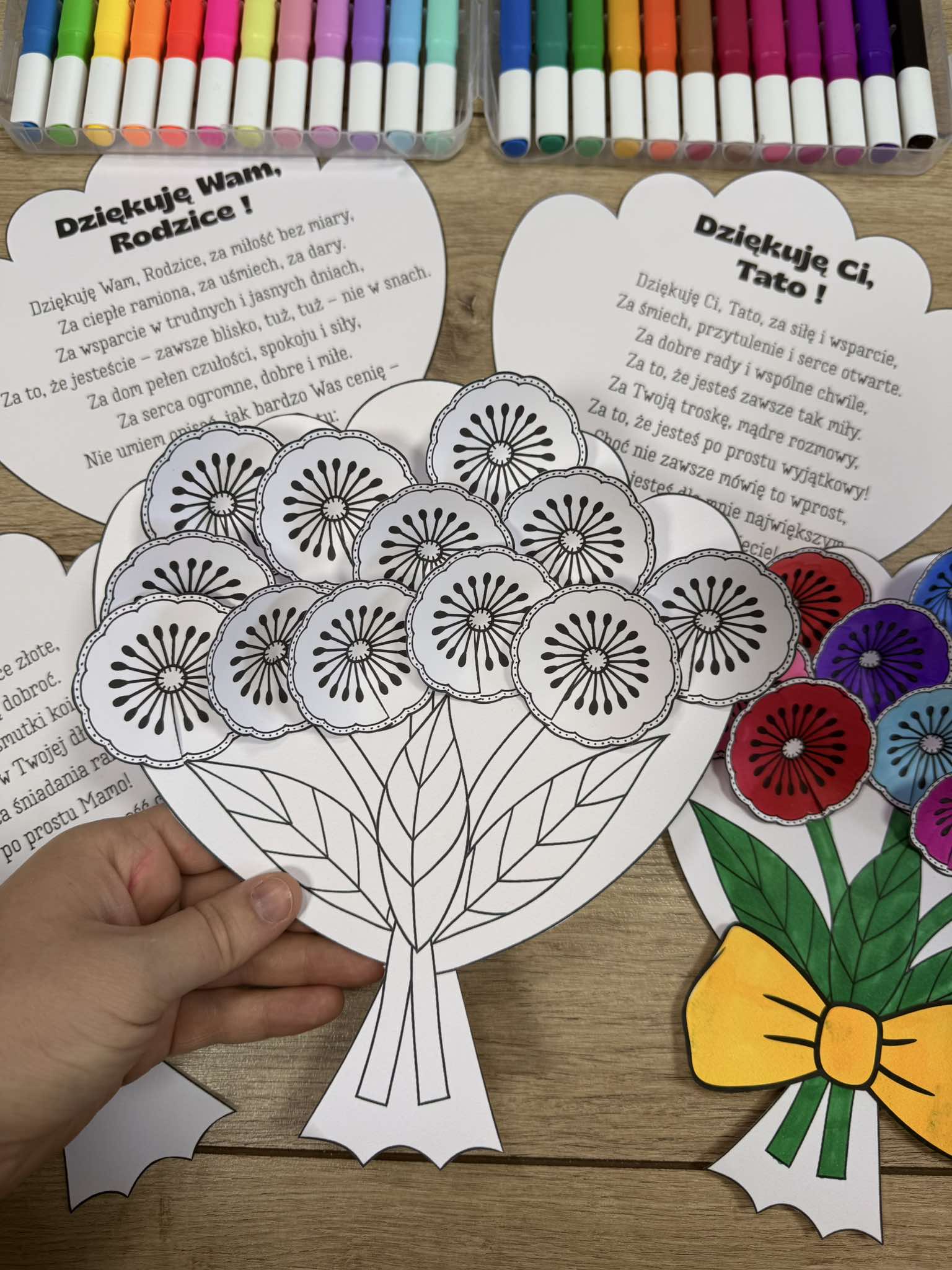 Bukiet z kwiatkami 3D i życzeniami - Dzień Mamy i Taty/ Dzień Rodziny