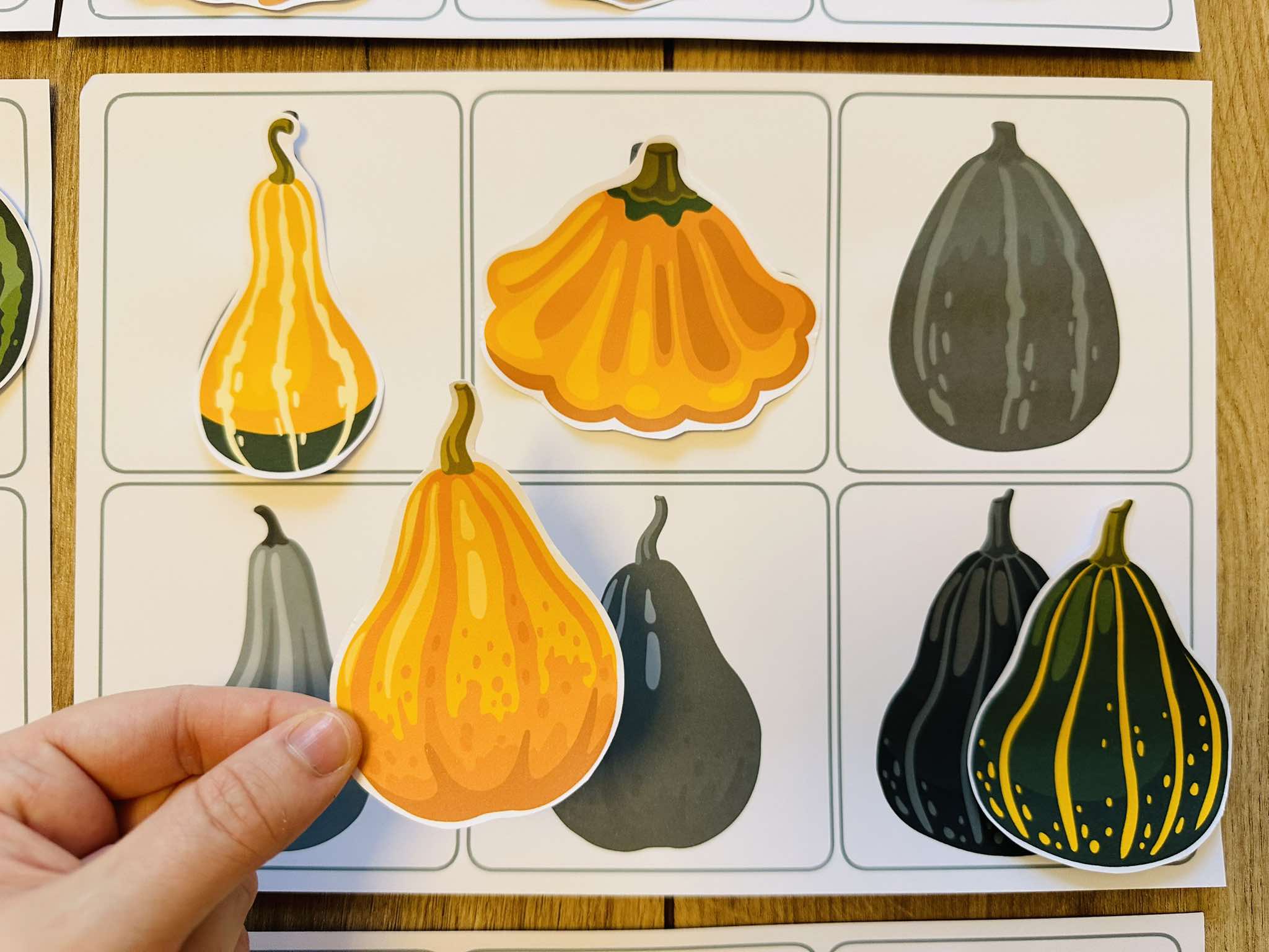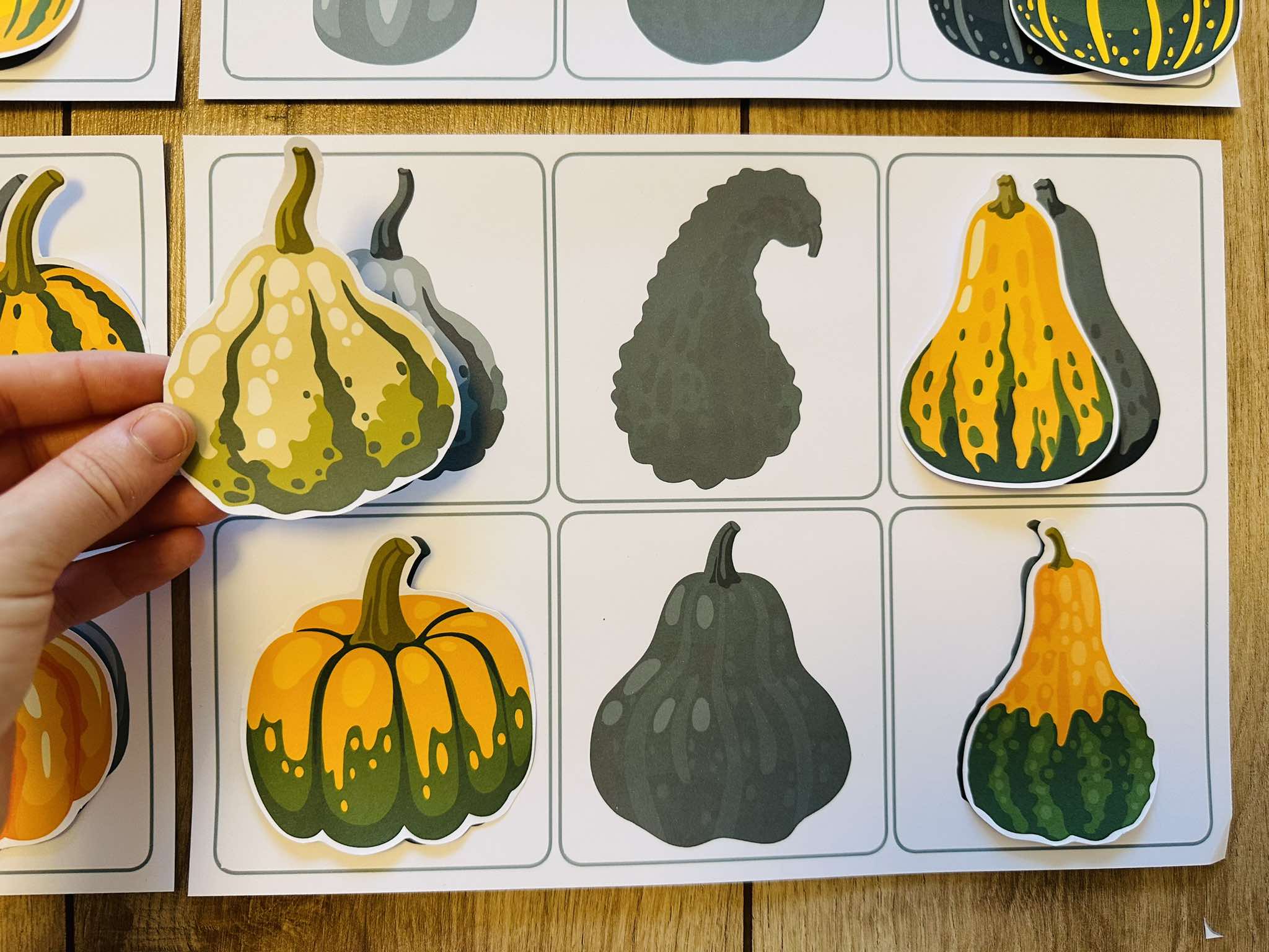 Zadaniem dzieci jest dopasowanie dyni do odpowiedniego cienia.