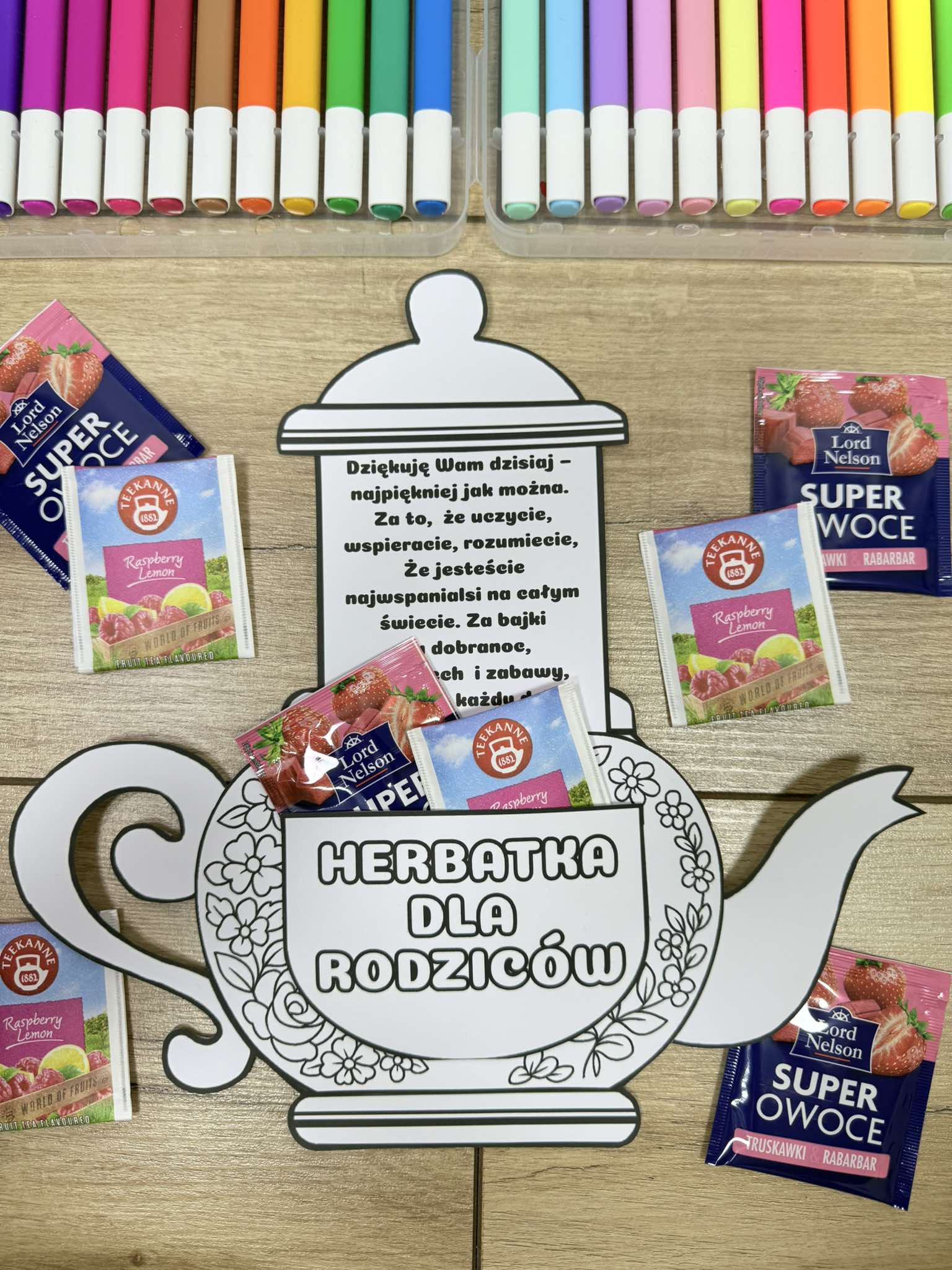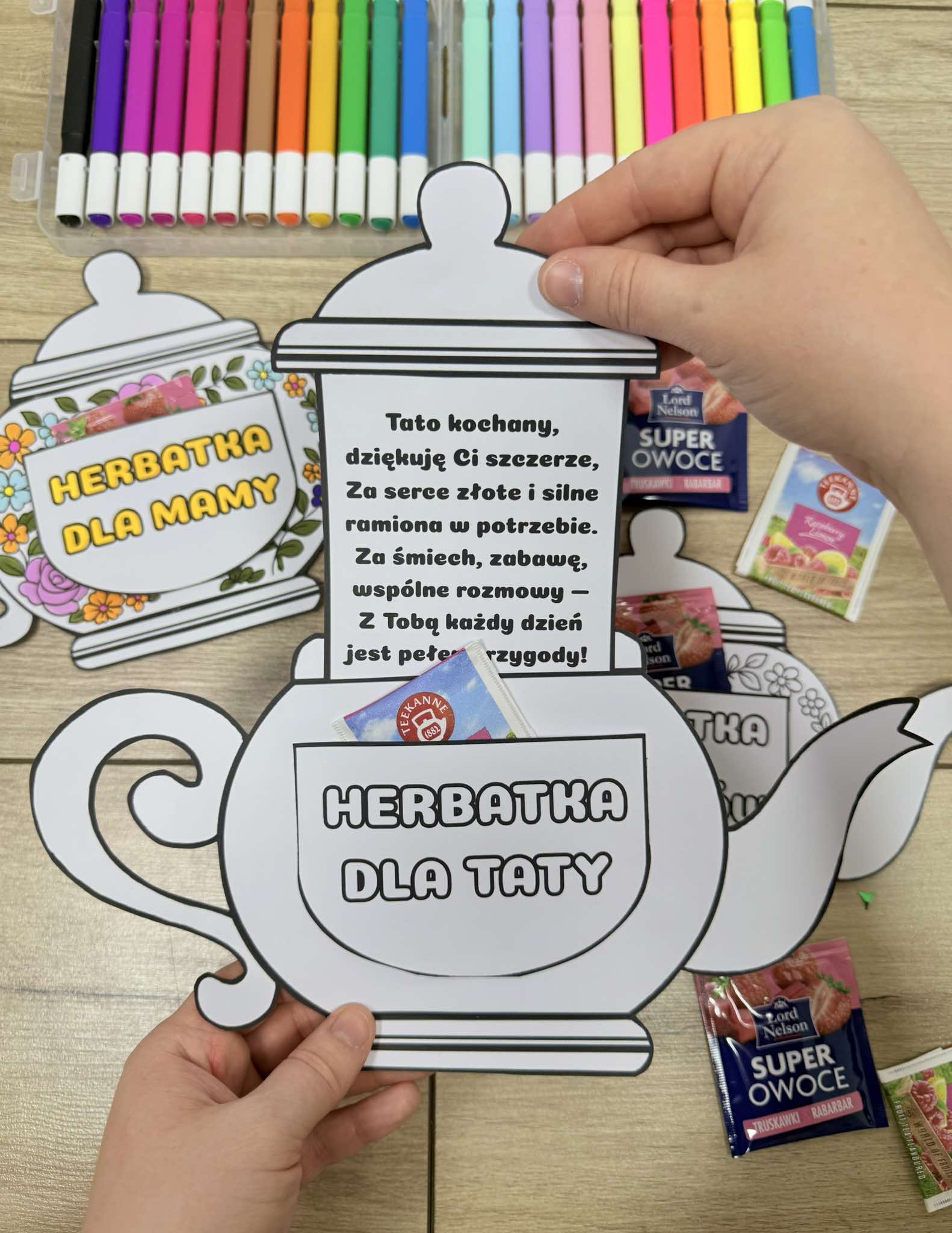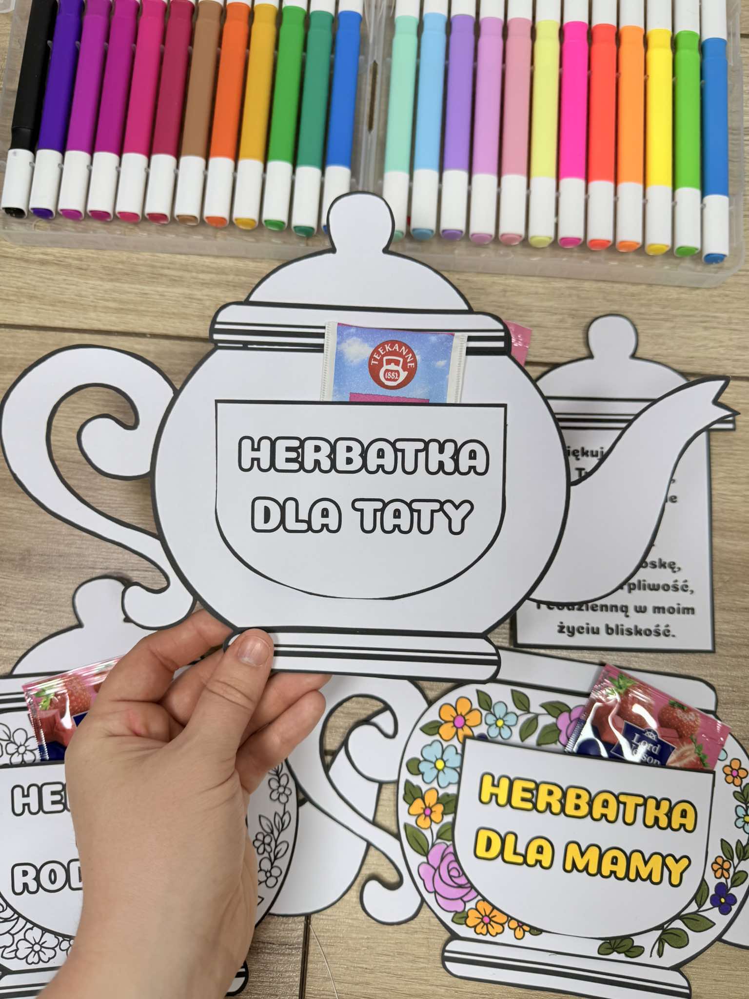 Dzbanek z herbatką i życzeniami - Dzień Mamy i Taty/ Dzień Rodziców