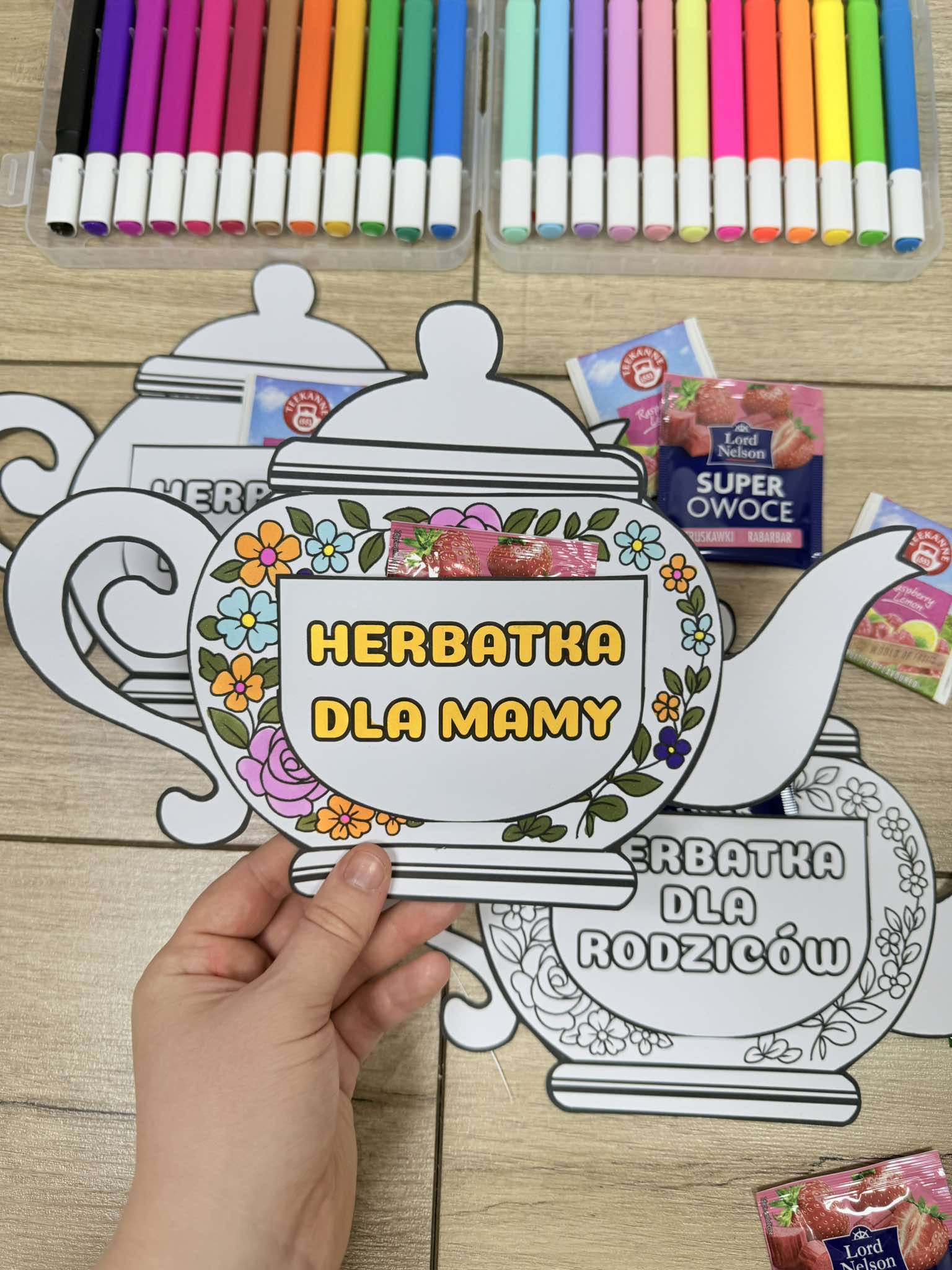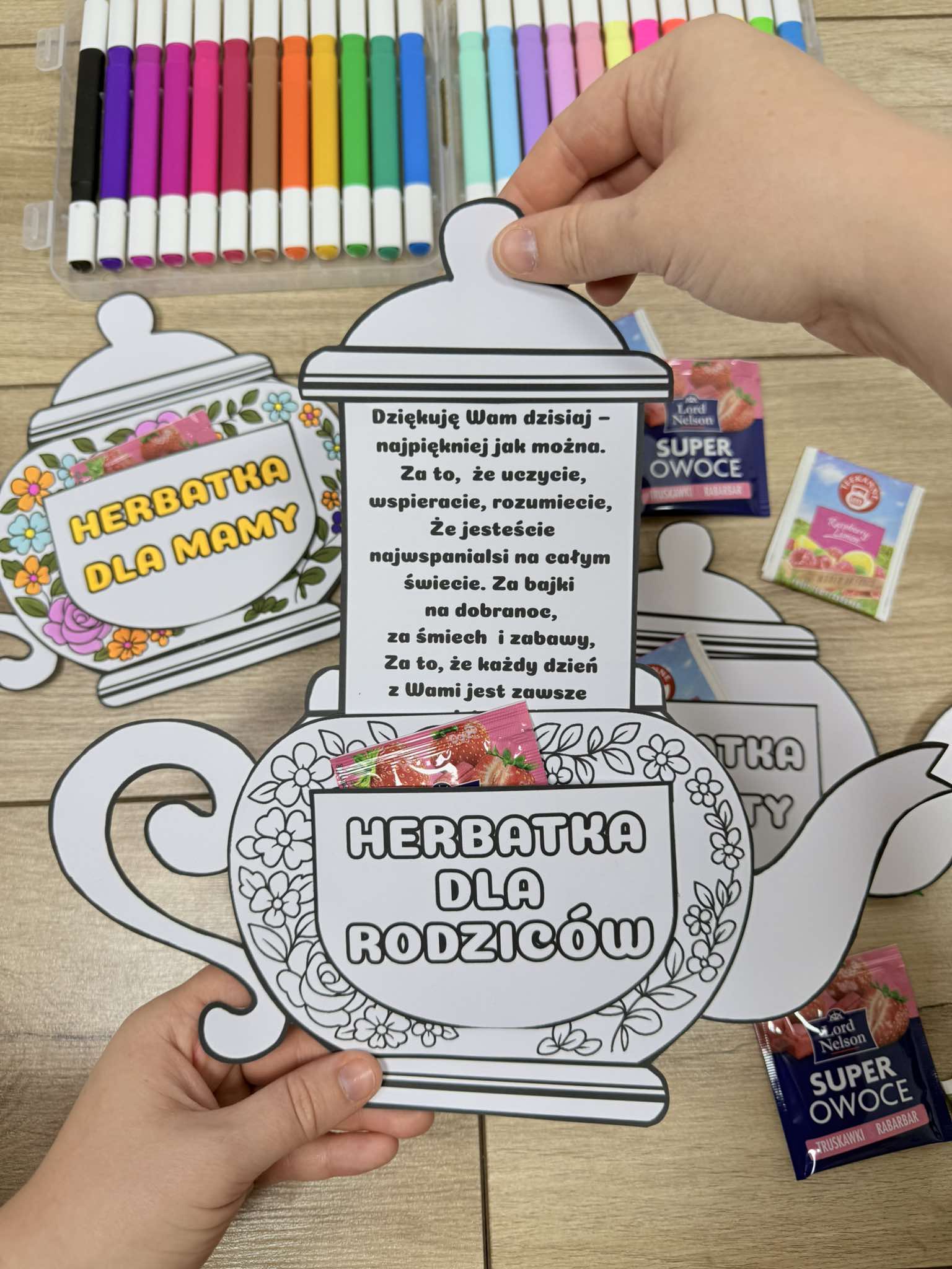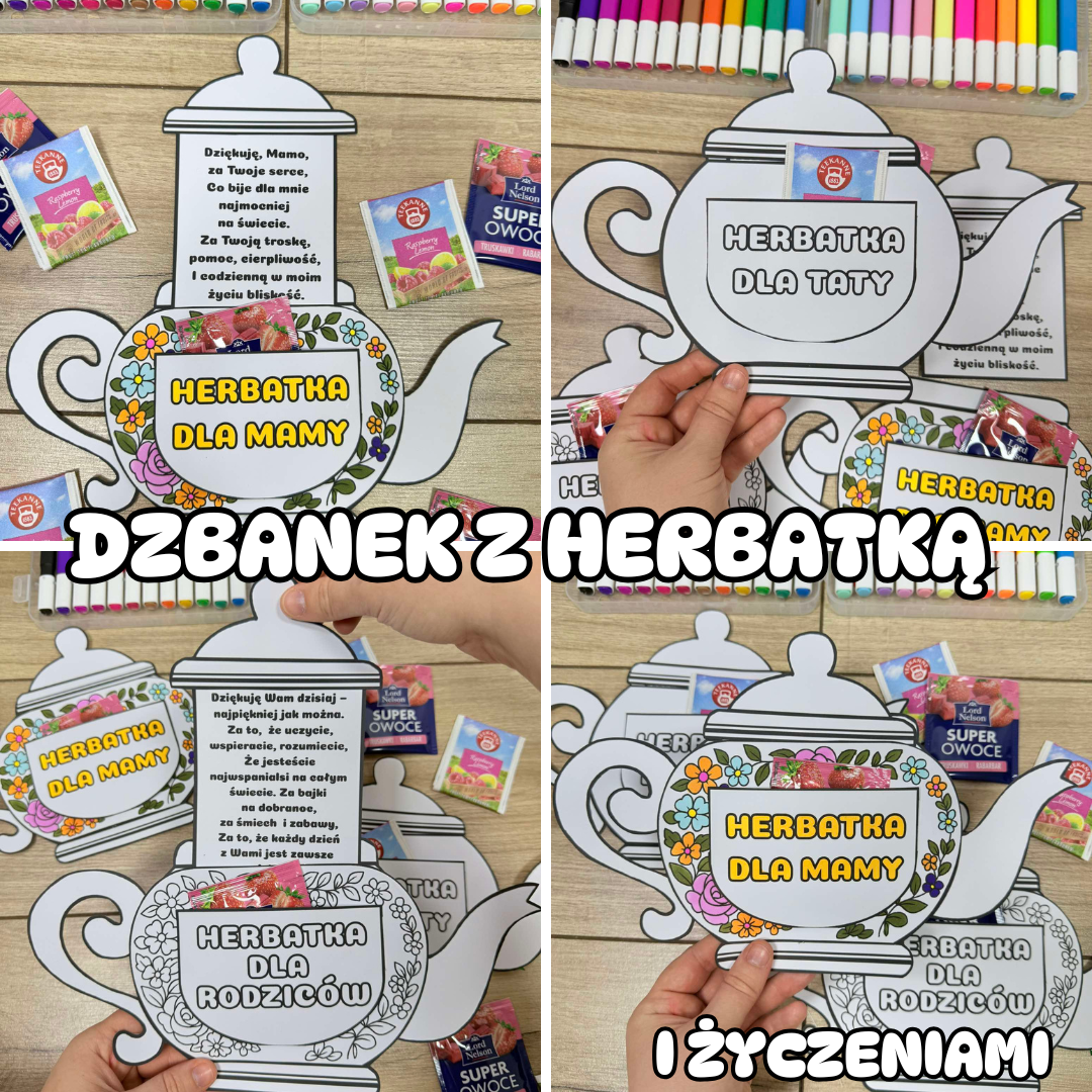 Dzbanek z herbatką i życzeniami - Dzień Mamy i Taty/ Dzień Rodziców