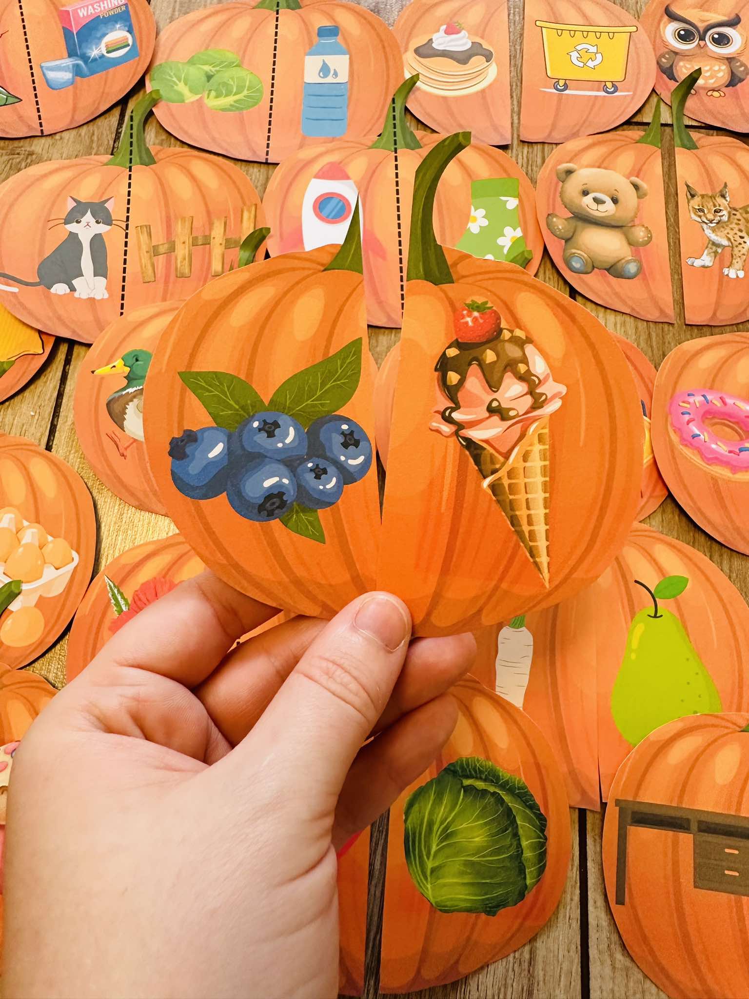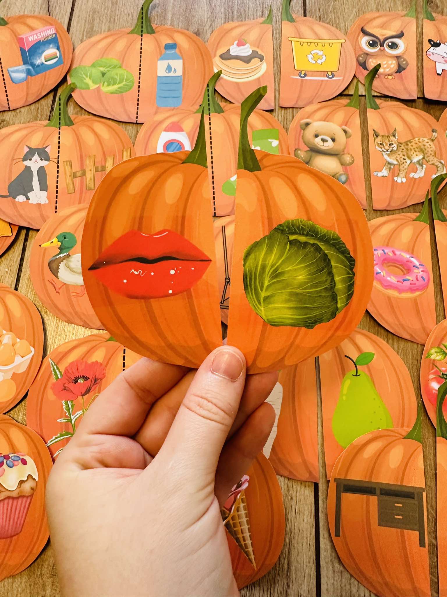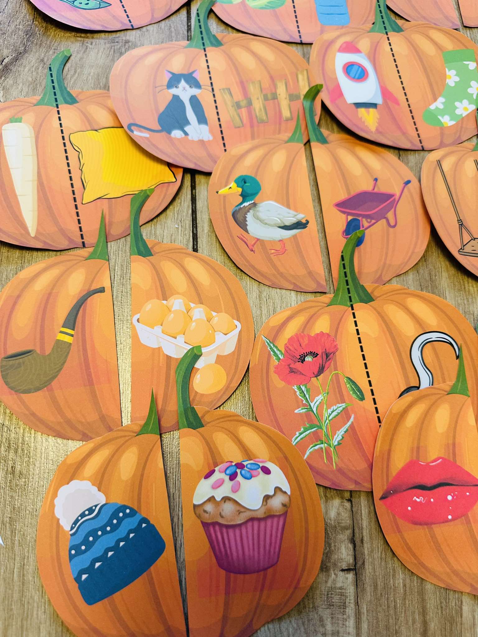 Dynie - Rymy do dopasowania : 46 par- 96 elementów do wyrobu z różnymi głoskami np. k, s, ś, r, sz, cz.