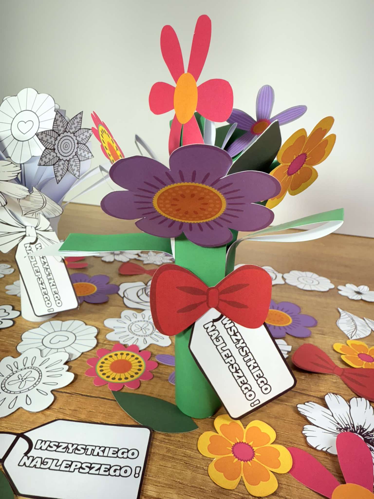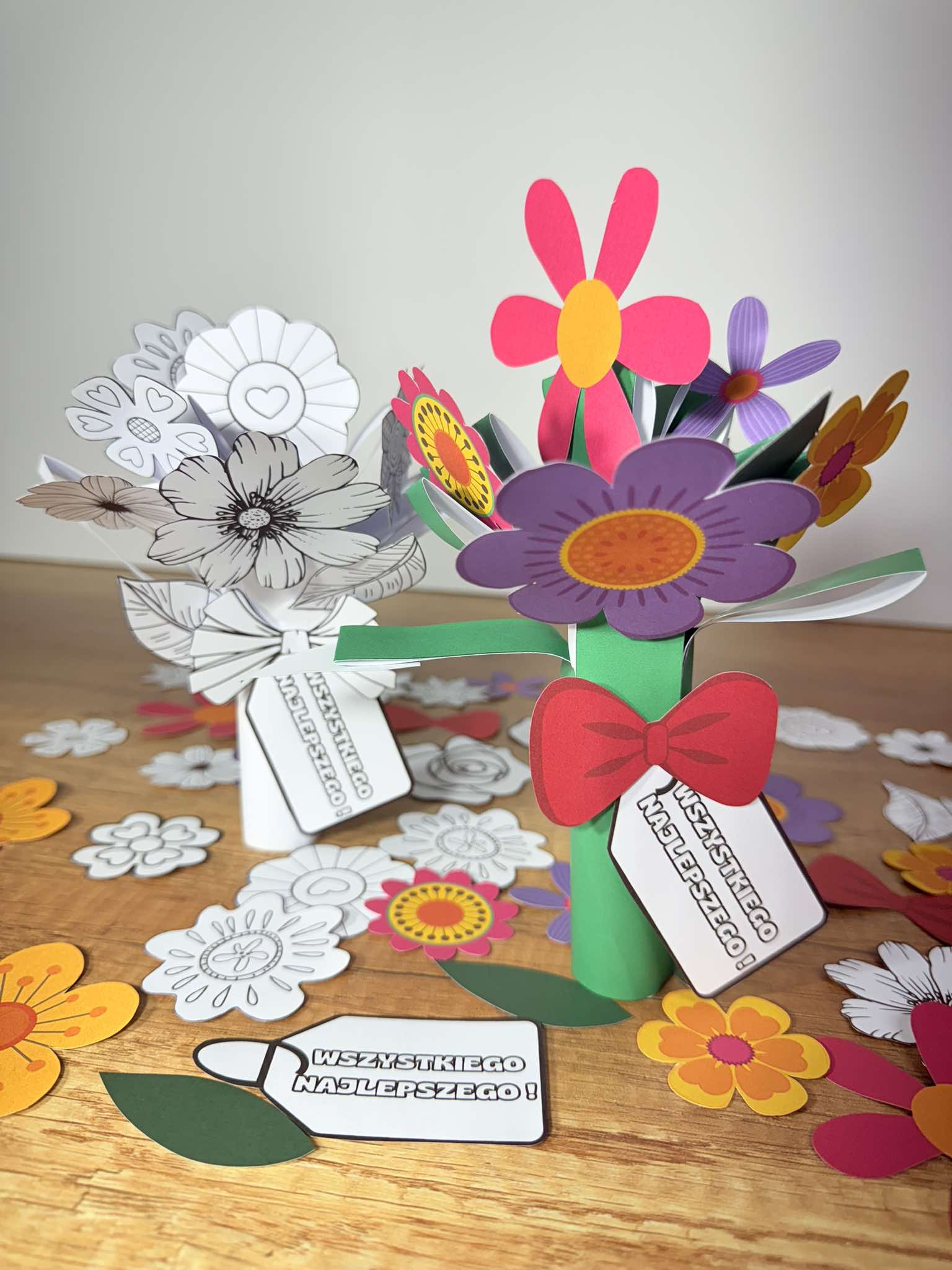 Dzień Kobiet - Bukiet 3D to idealny pomysł na wykonanie prezentu przez dzieci.