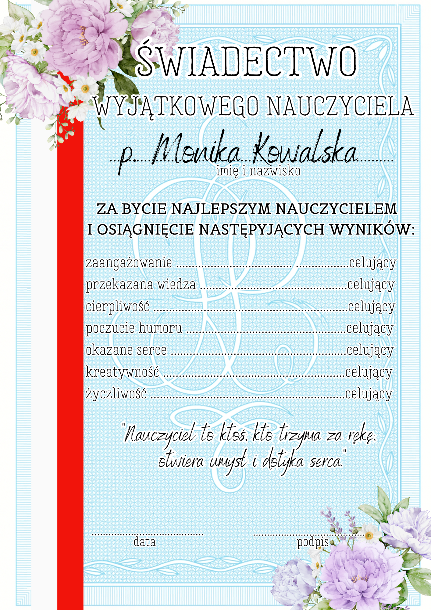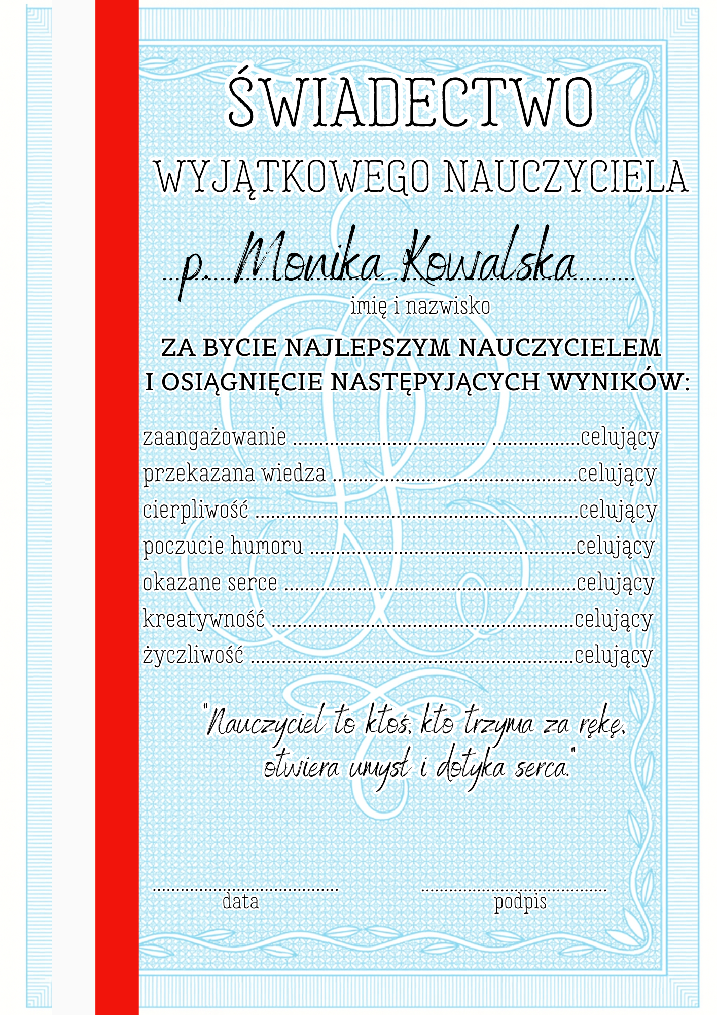 Dzień Edukacji - Świadectwo Dla Nauczyciela - z możliwością edycji