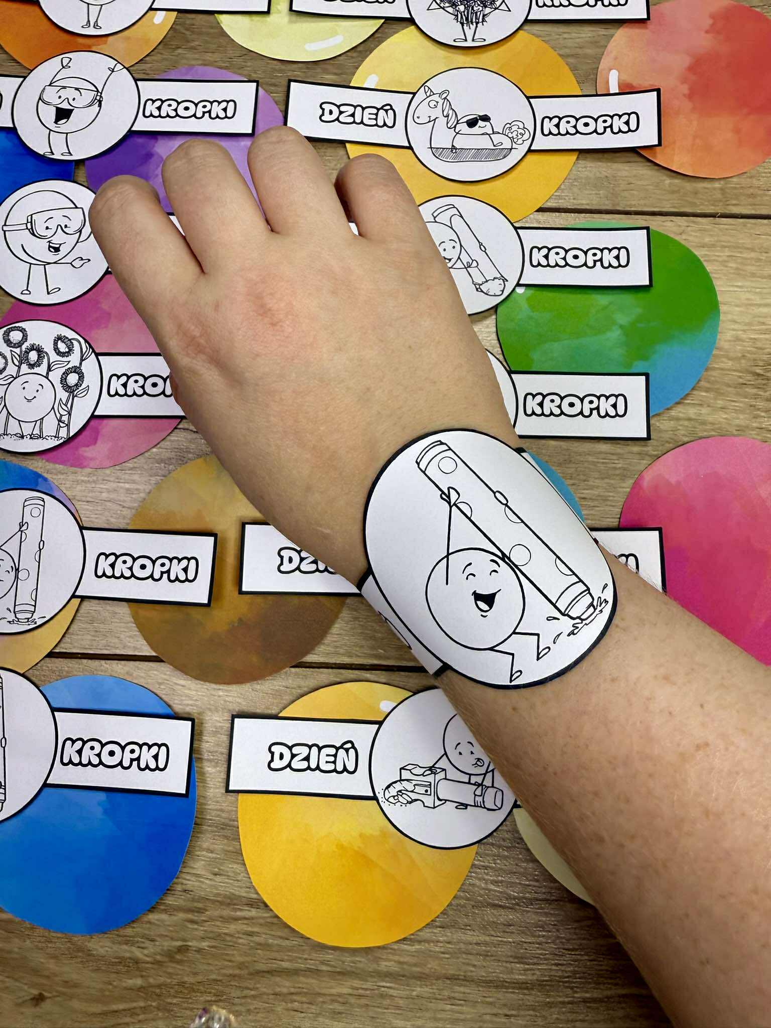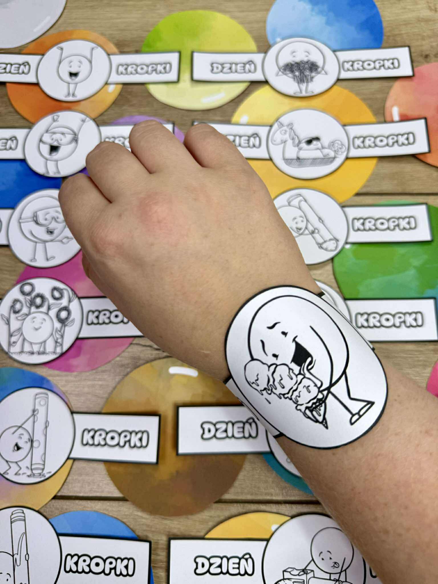 Dzień Kropki - Opaski na ręce z różnymi wzorami kropek.