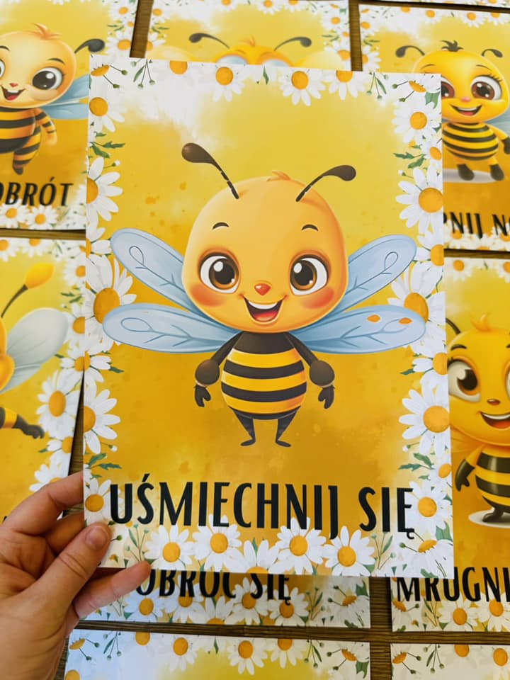 Zabawa polega na przejściu ścieżki , a karty z postaciami pszczółek możecie również wykorzystać przy porannej gimnastyce.