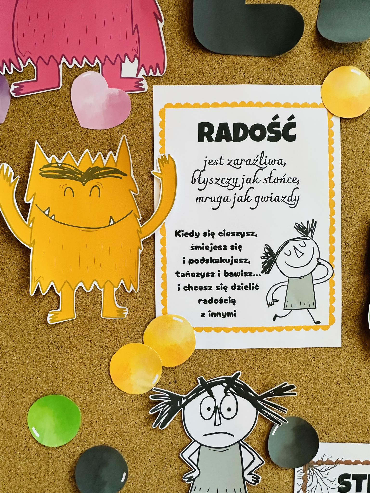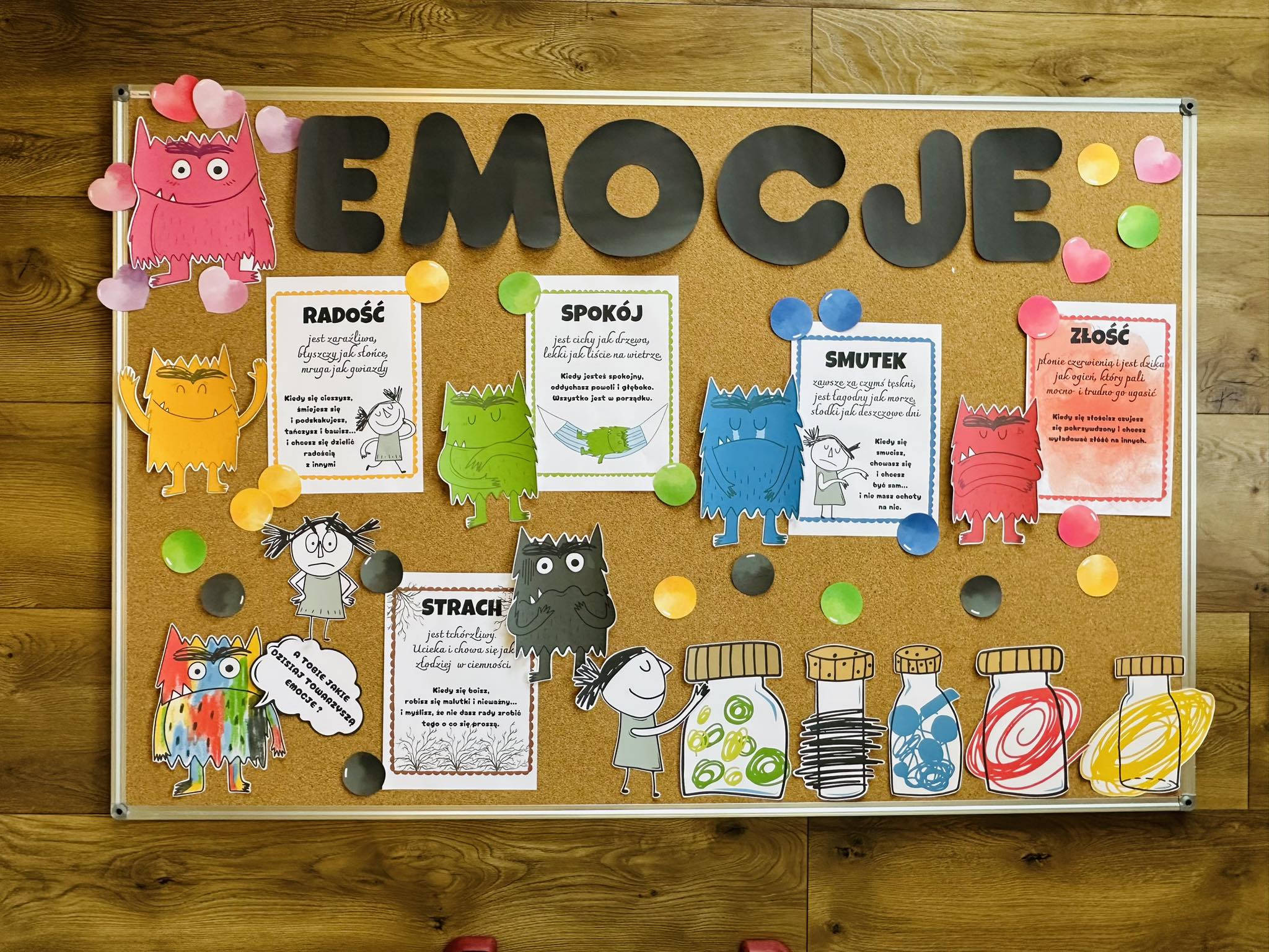 Materiały można również wykorzystać podczas omawiania emocji oraz książki „Kolorowy Potwór” Anna Llenas.