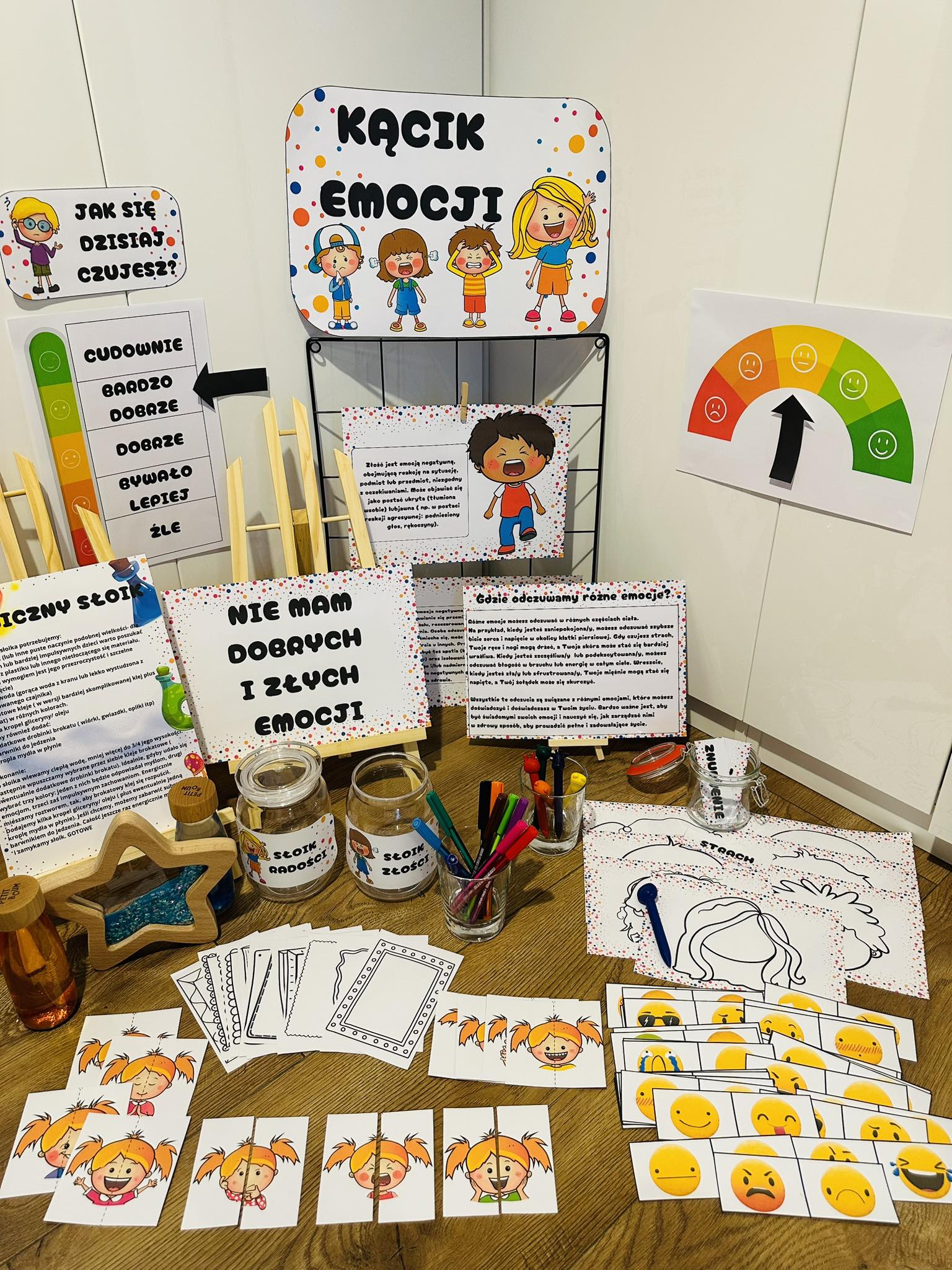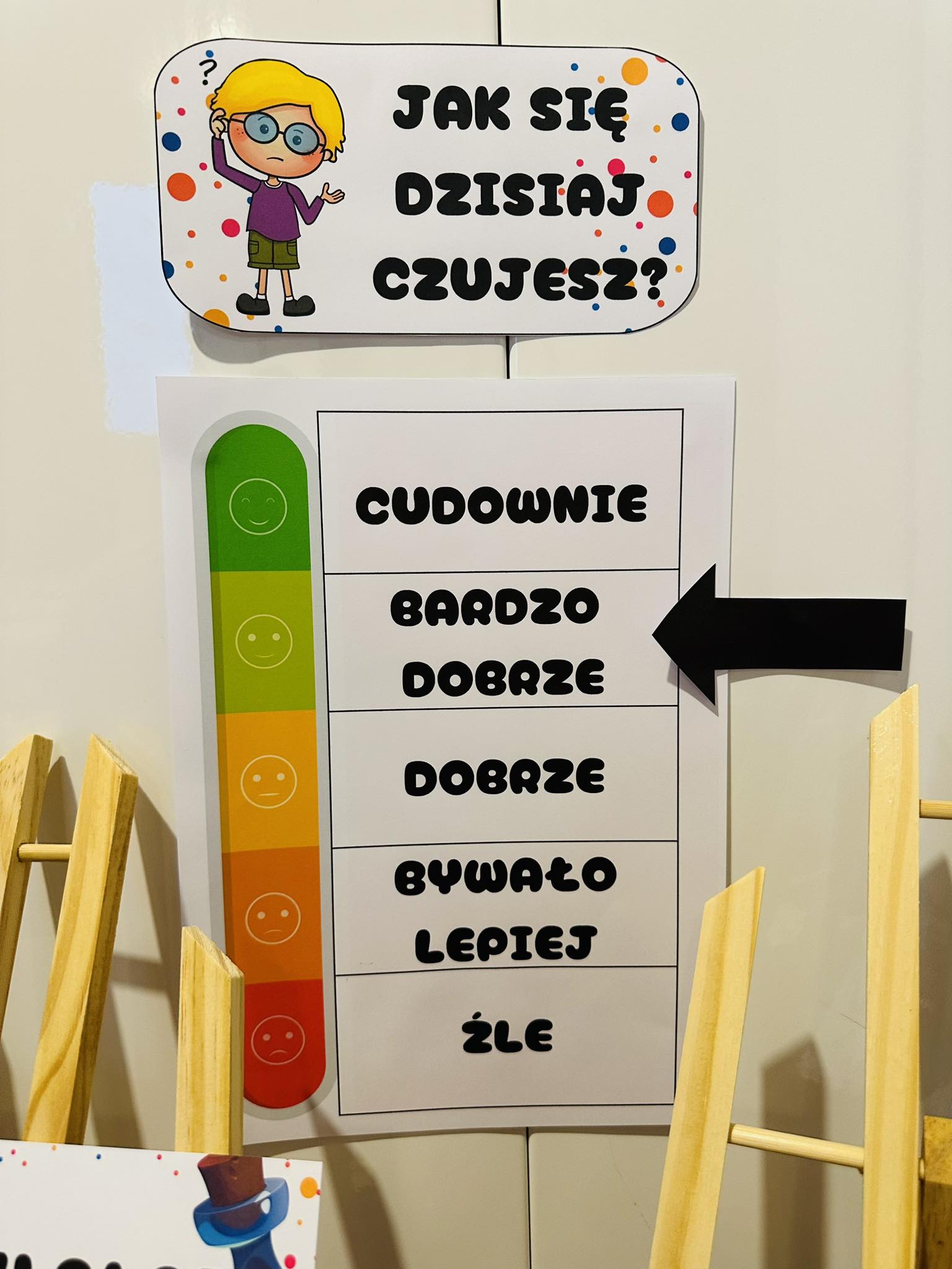- Emocjometr na którym zaznaczają swoje samopoczucie,