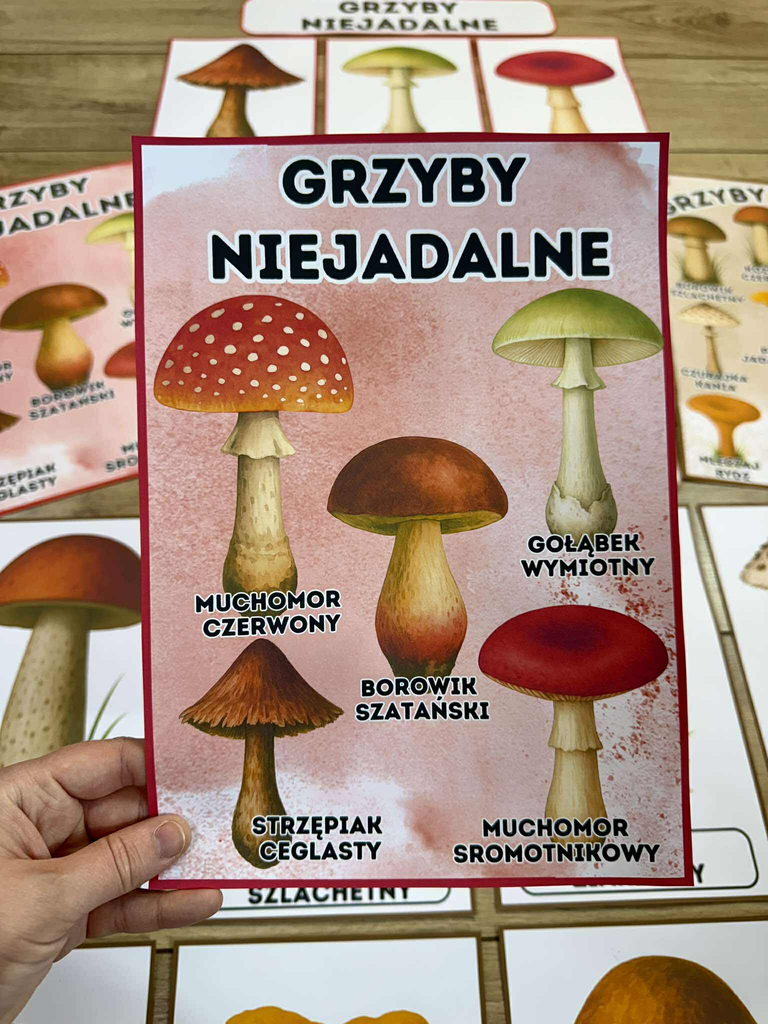 W pliku znajdują się plansze z grzybami jadalnymi i niejadalnymi.