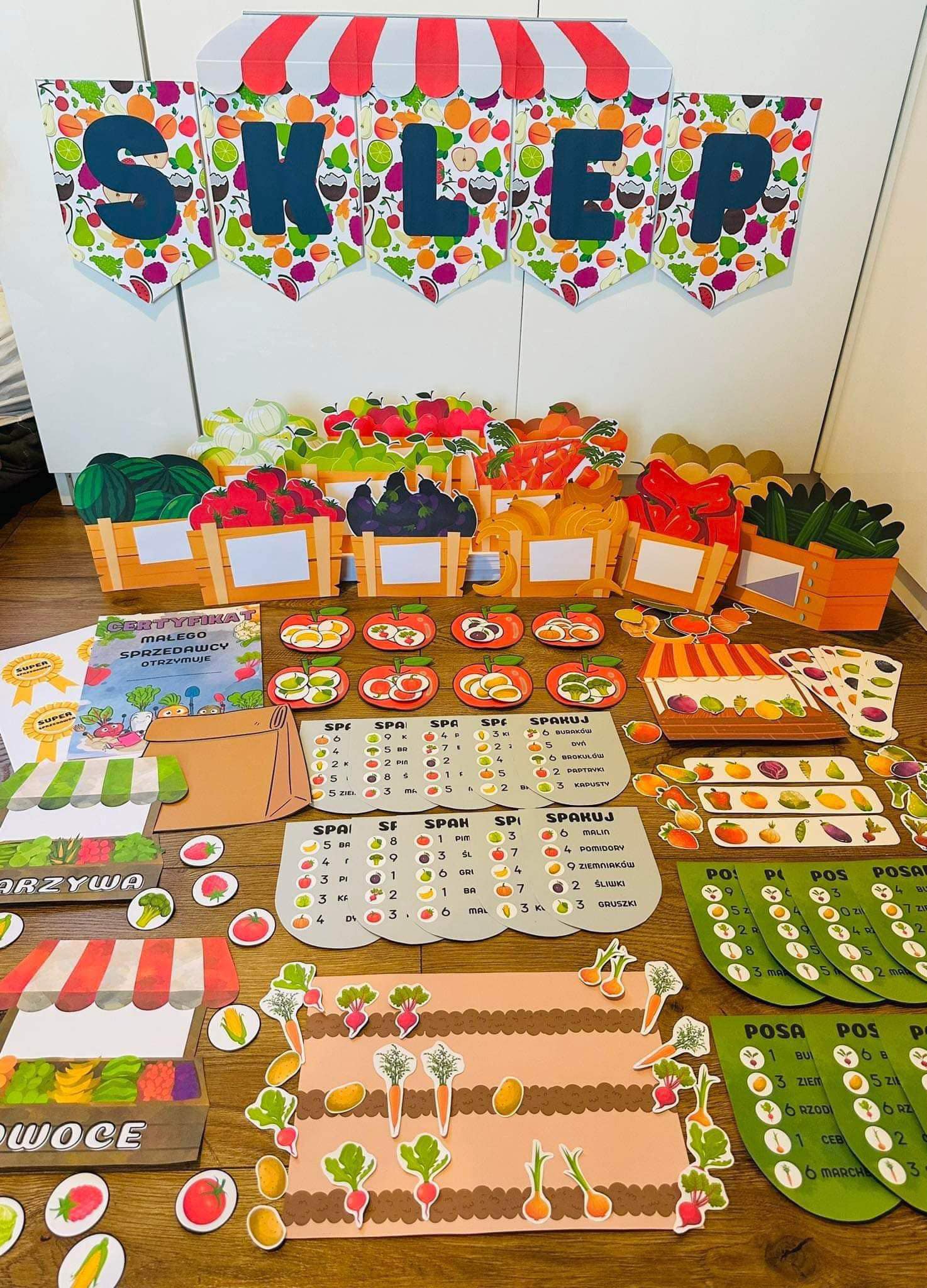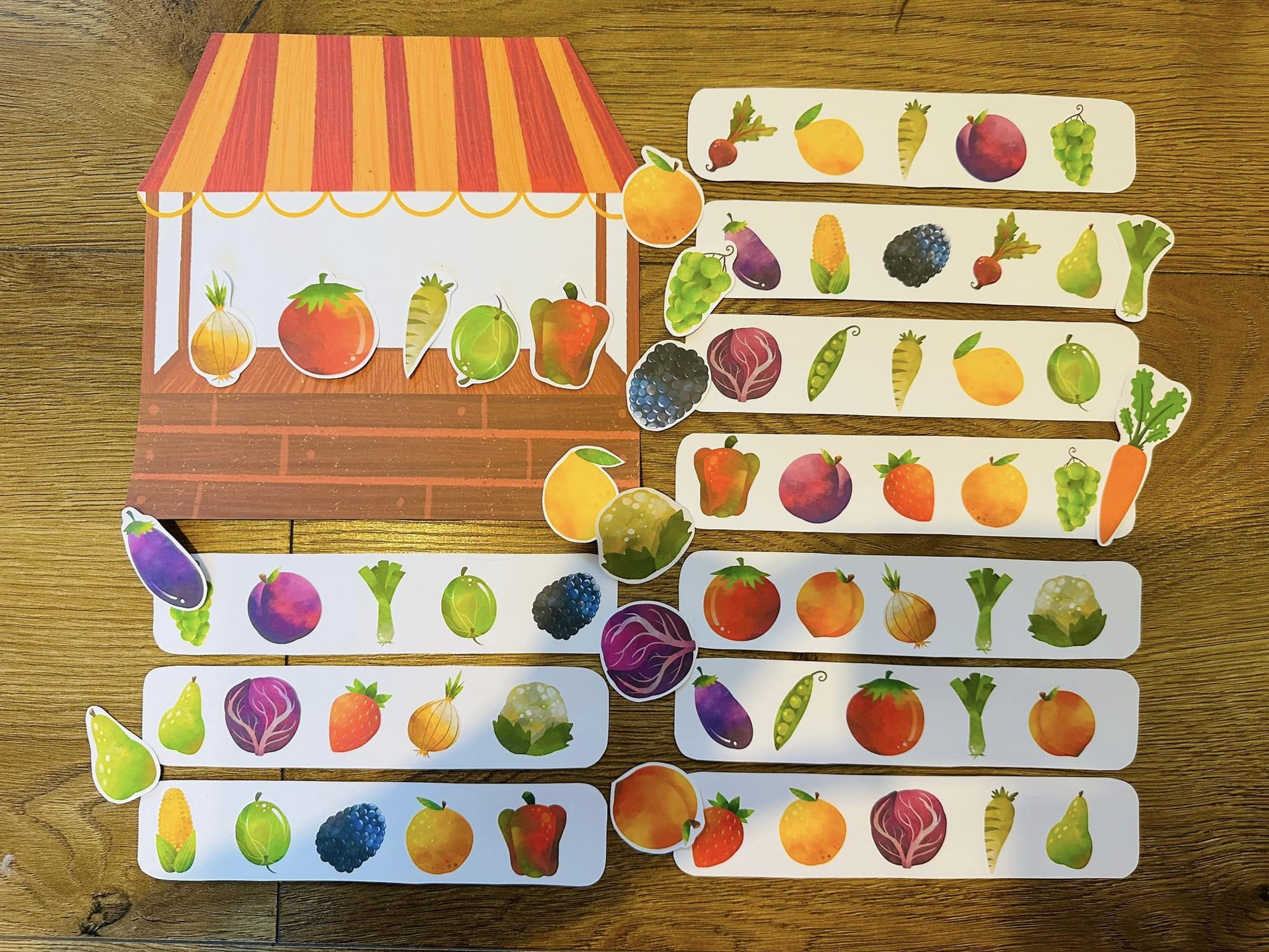 - Układanie według wzoru warzyw i owoców na straganie