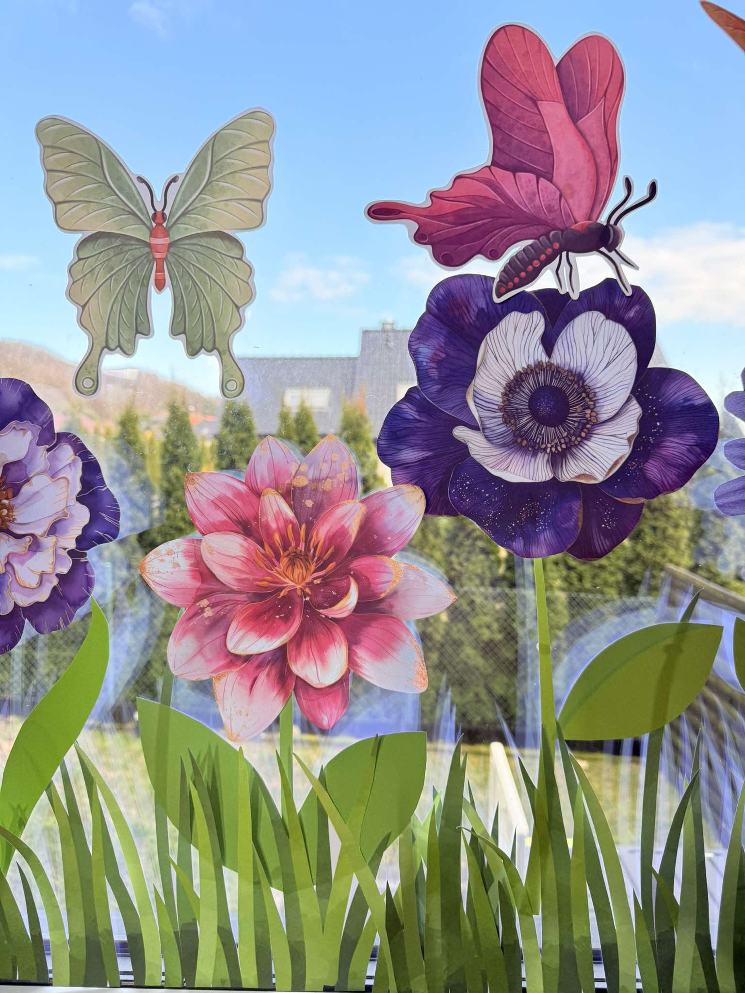 Wiosenne Kwiaty i Motyle dwustronne dekoracje na okna lub gazetki.