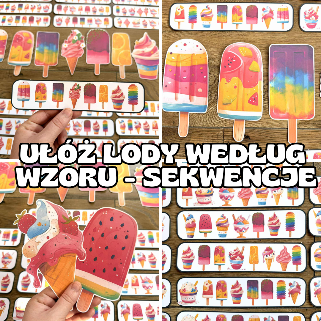 Zadaniem dzieci jest ułożenie lodów według wzoru, do pobrania 40 plansz.