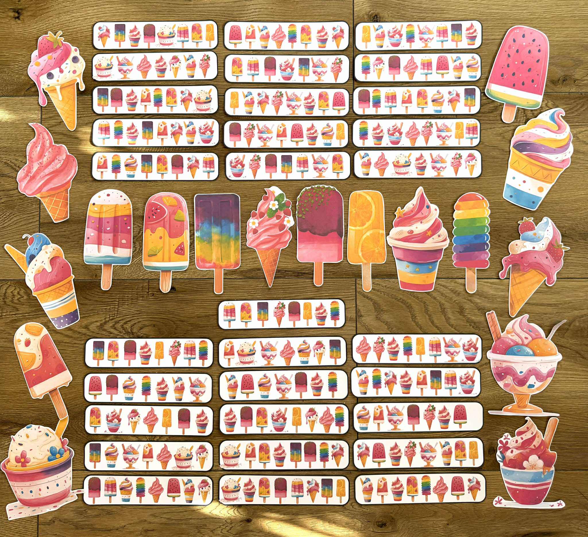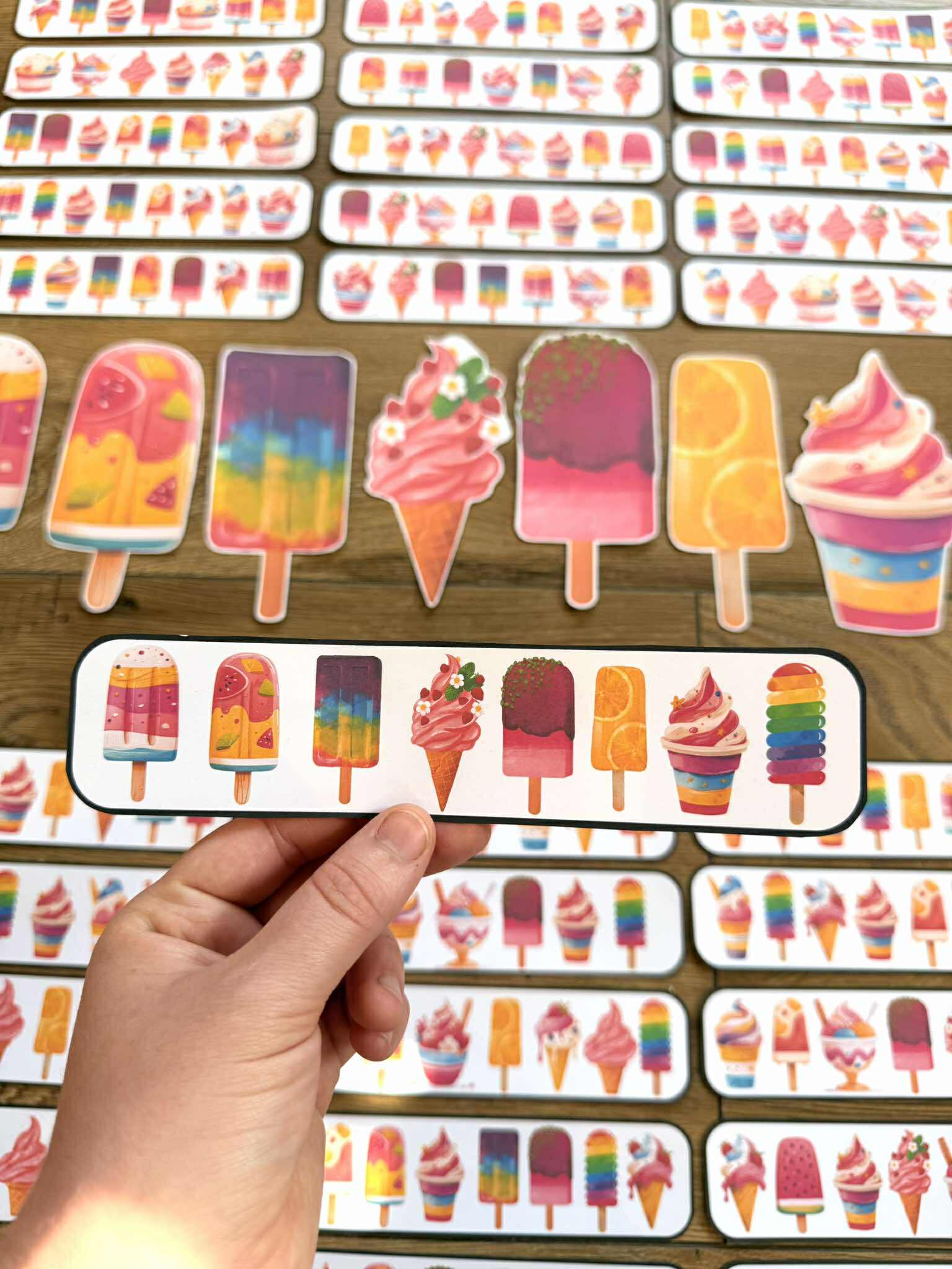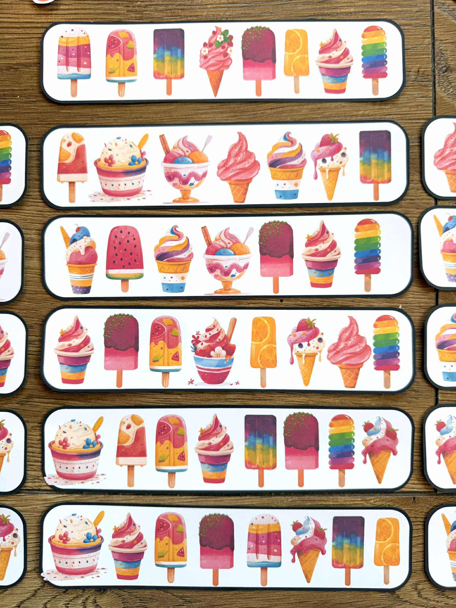 Zadaniem dzieci jest ułożenie lodów według wzoru, do pobrania 40 plansz.