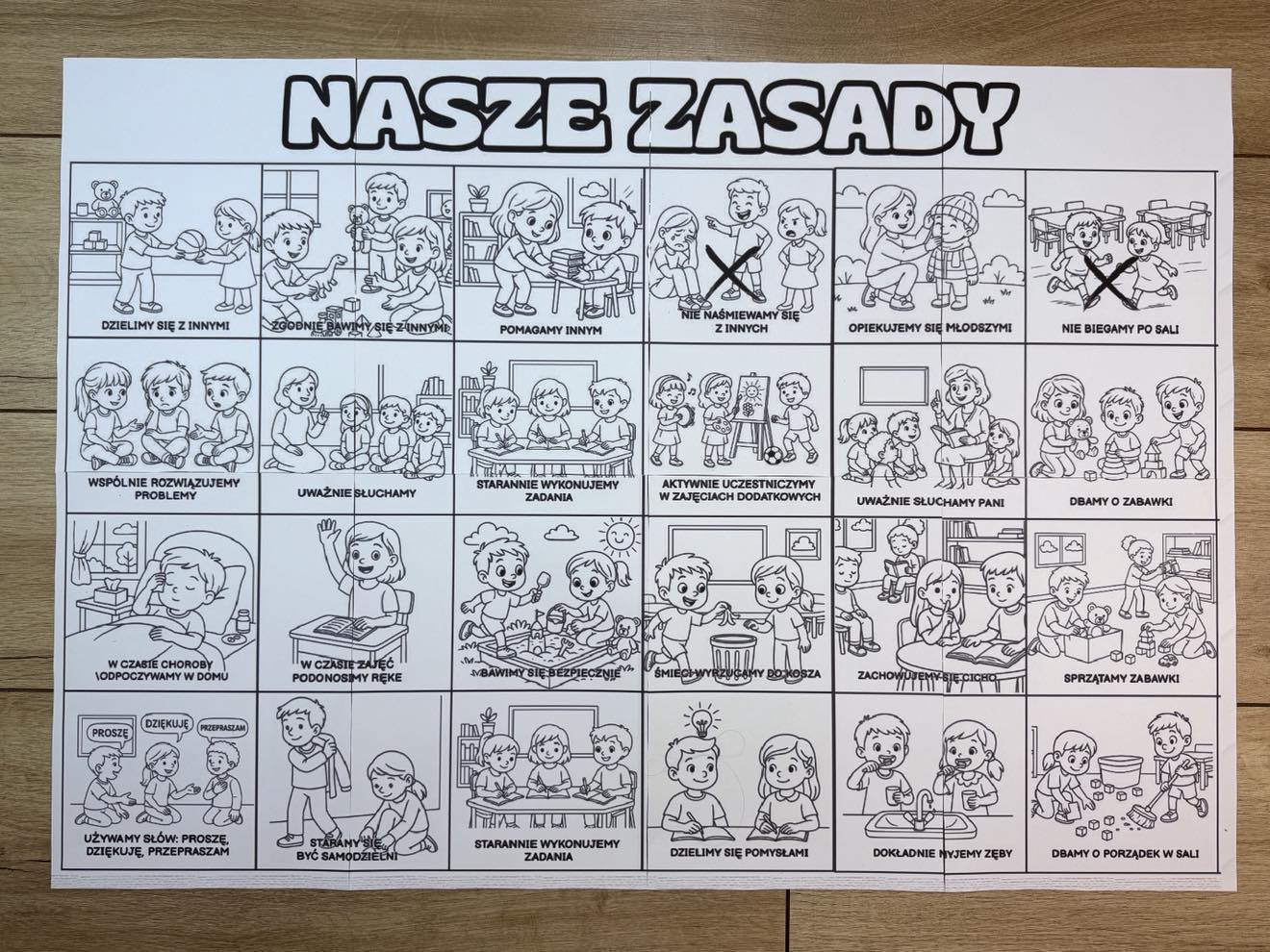 Kolorowanka XXL przedstawiającą Nasze Zasady w rozmiarach:
