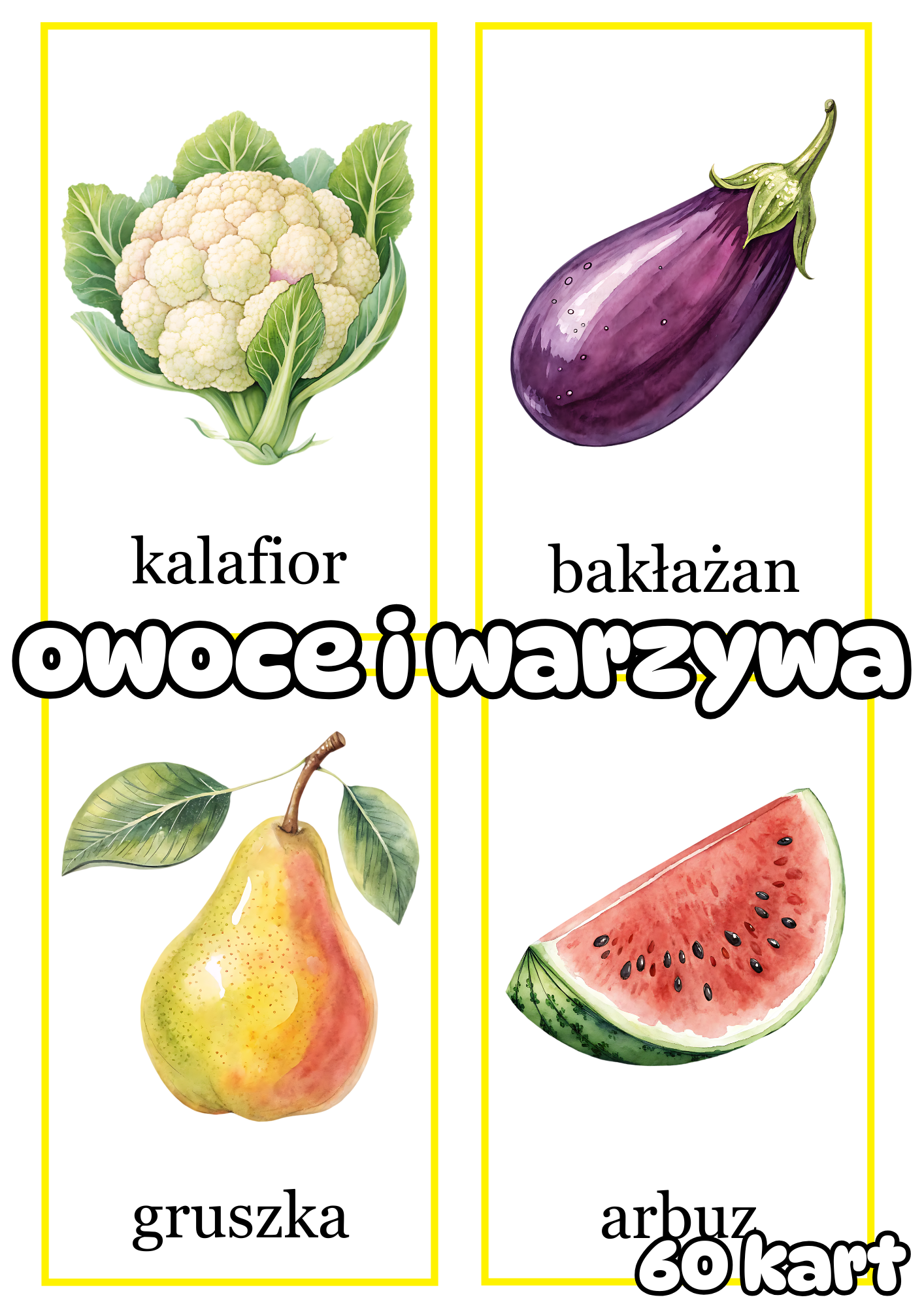 Dodatkowo znajdują się tabliczki z napisami: owoce / warzywa, które umożliwiają dodatkowo podział kart.