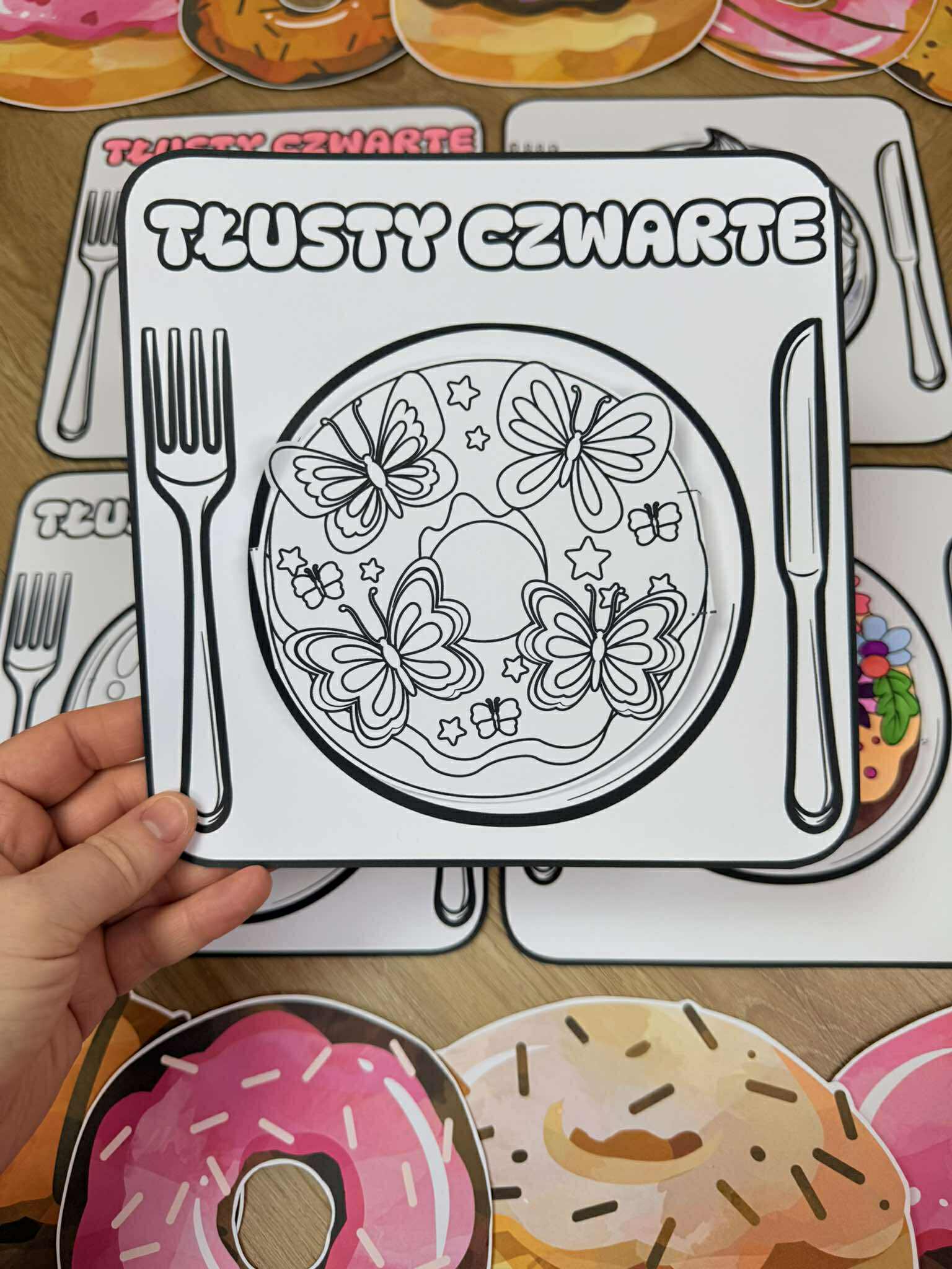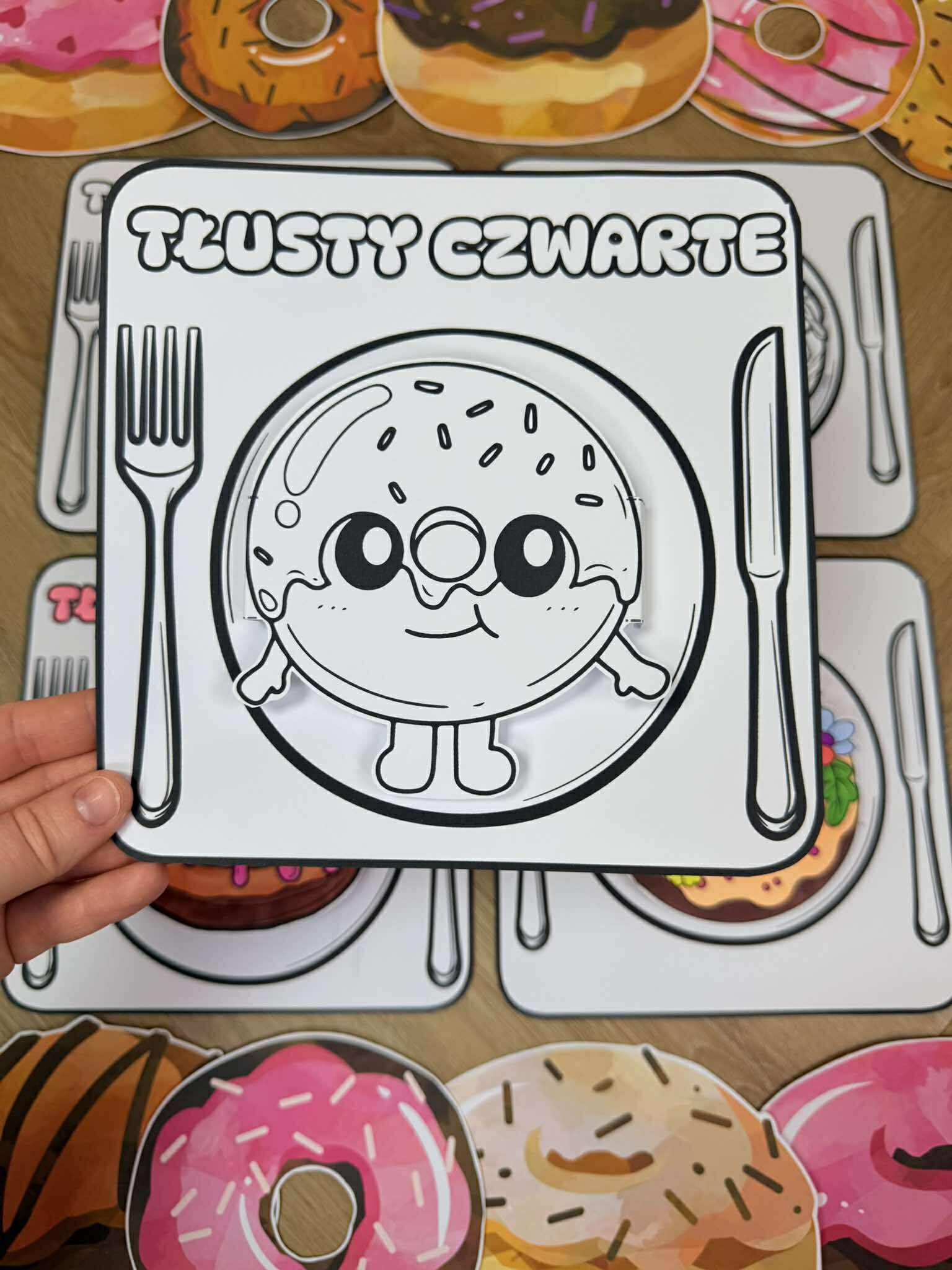 W pliku znajdują się różne ilustracje pączków oraz dwa wzory szablonów ( jeden z napisem