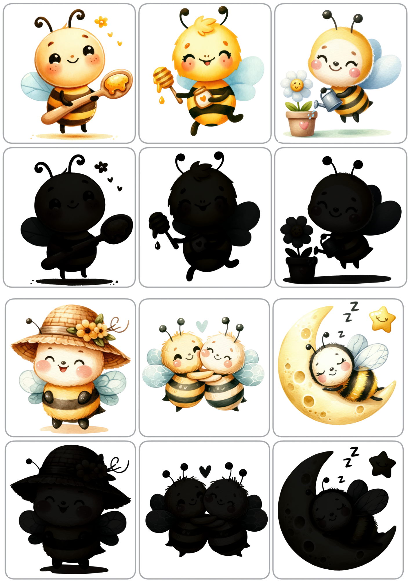 Zadaniem dzieci jest dopasowanie pszczół do odpowiedniego cienia.