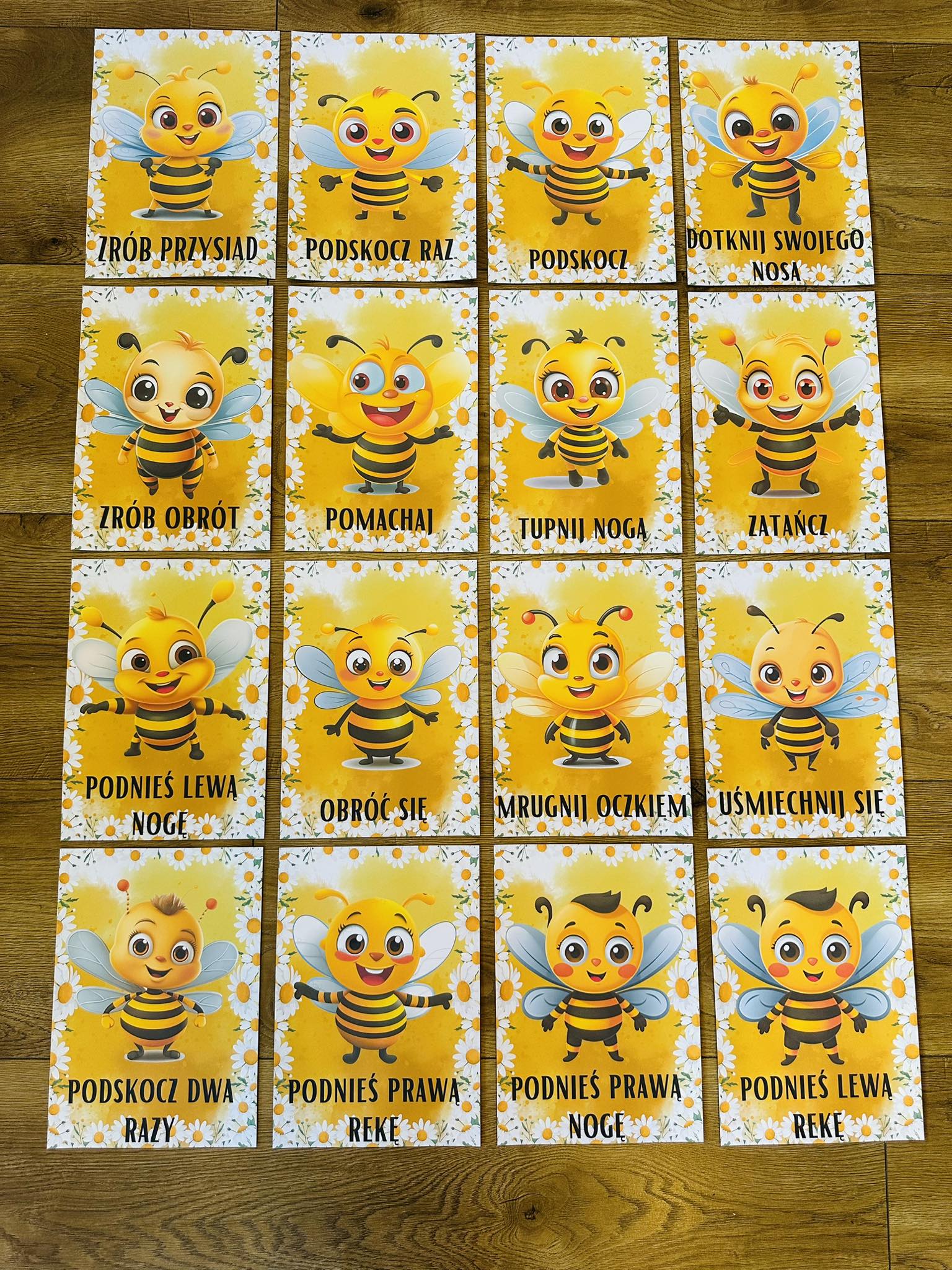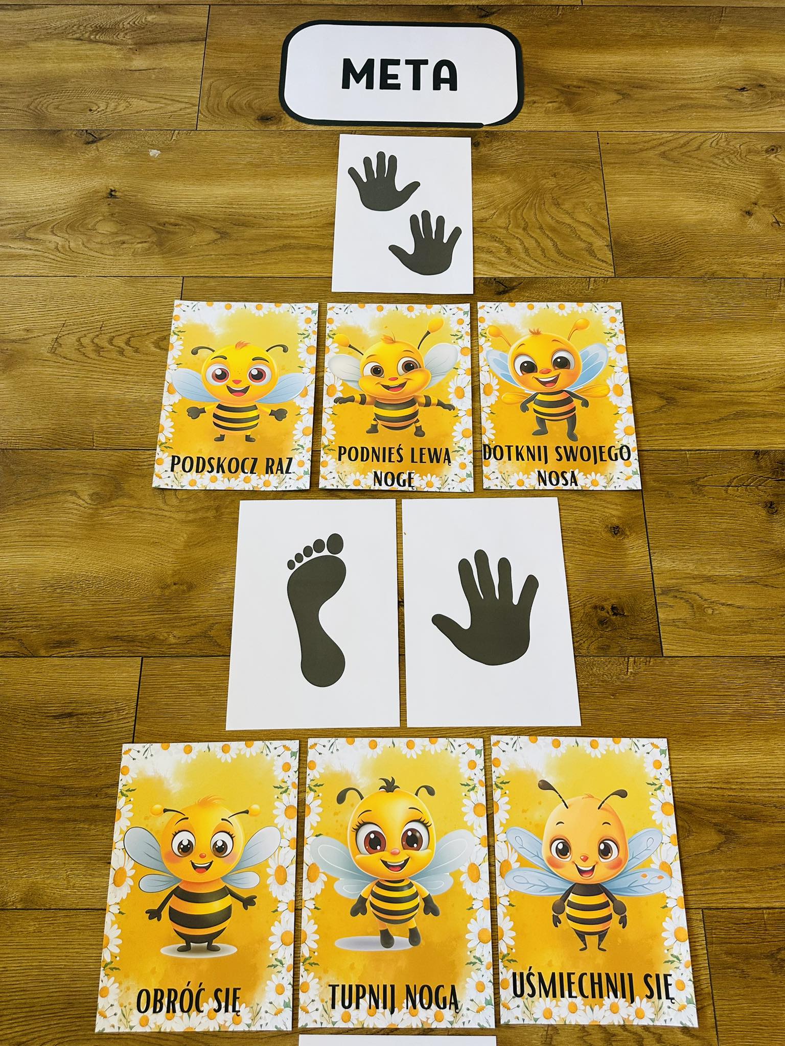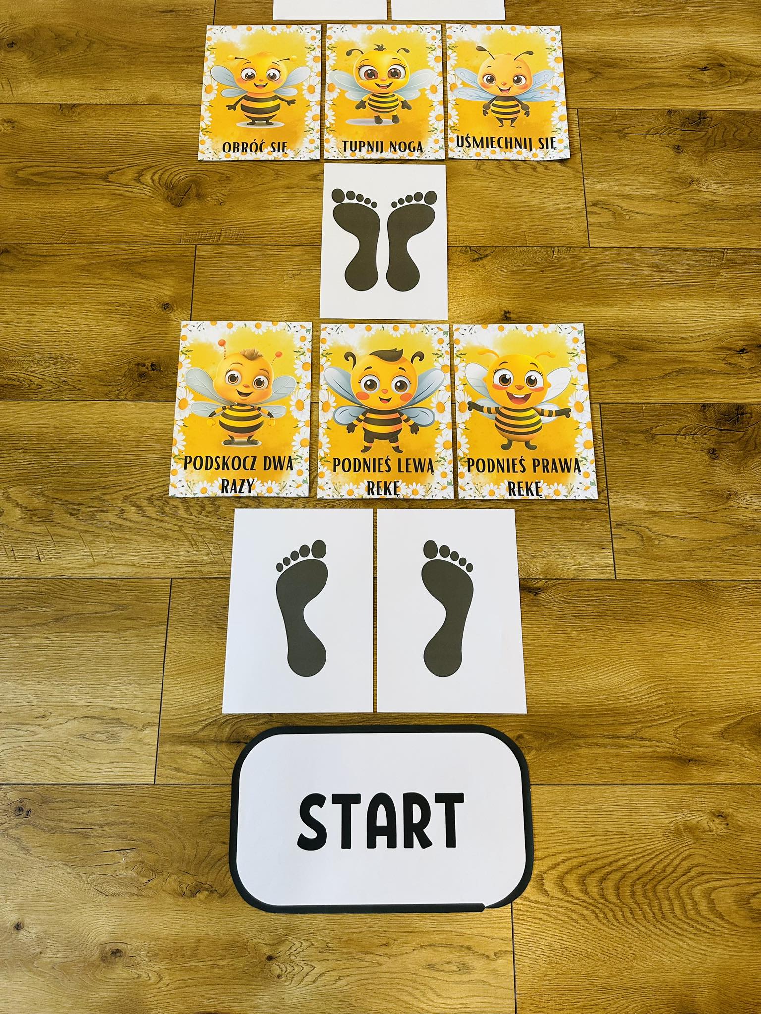 Zabawa polega na przejściu ścieżki , a karty z postaciami pszczółek możecie również wykorzystać przy porannej gimnastyce.