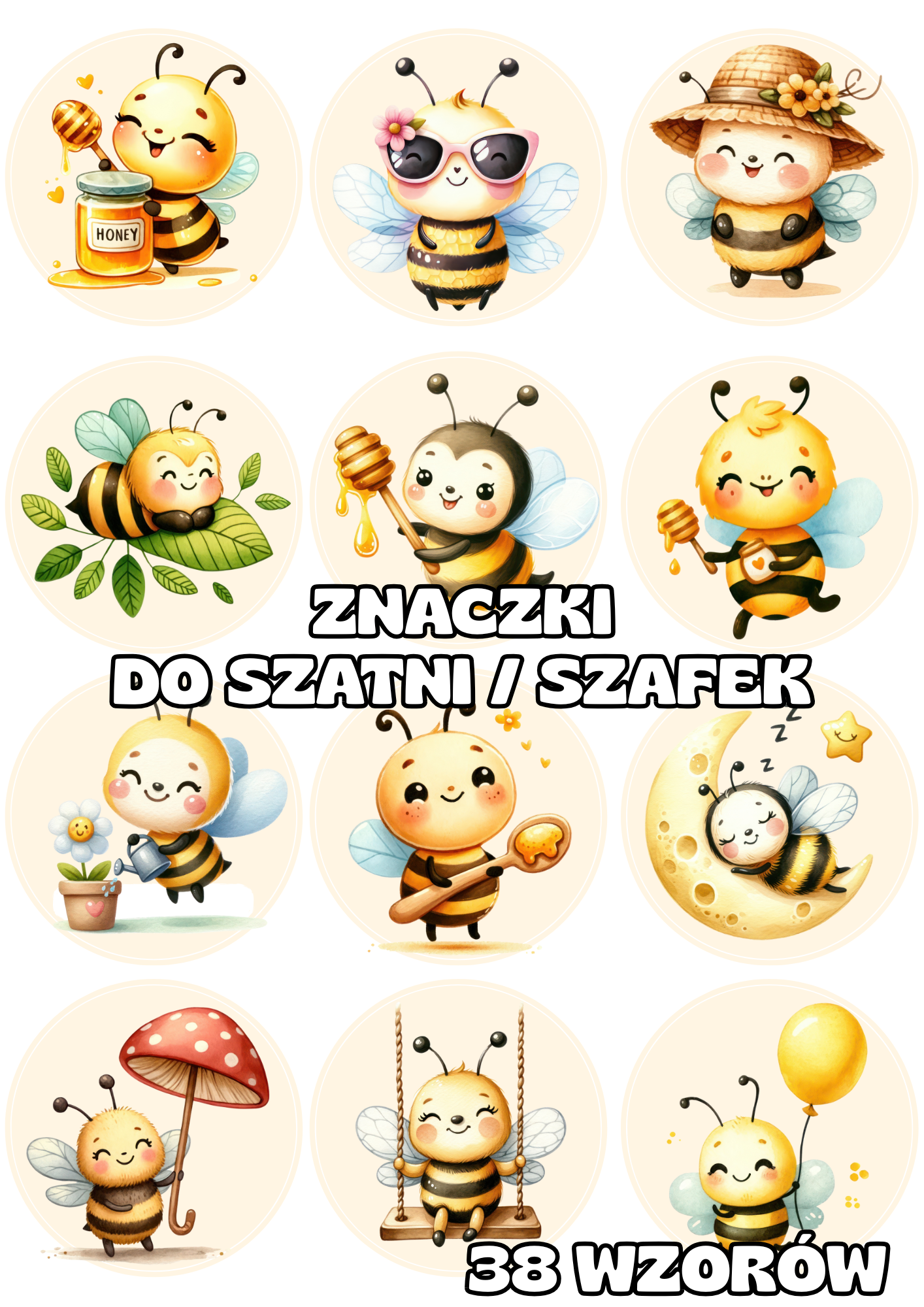 Pszczółki - do Szatni / na Szafki - BEZ MOŻLIWOŚCI EDYCJI IMION.