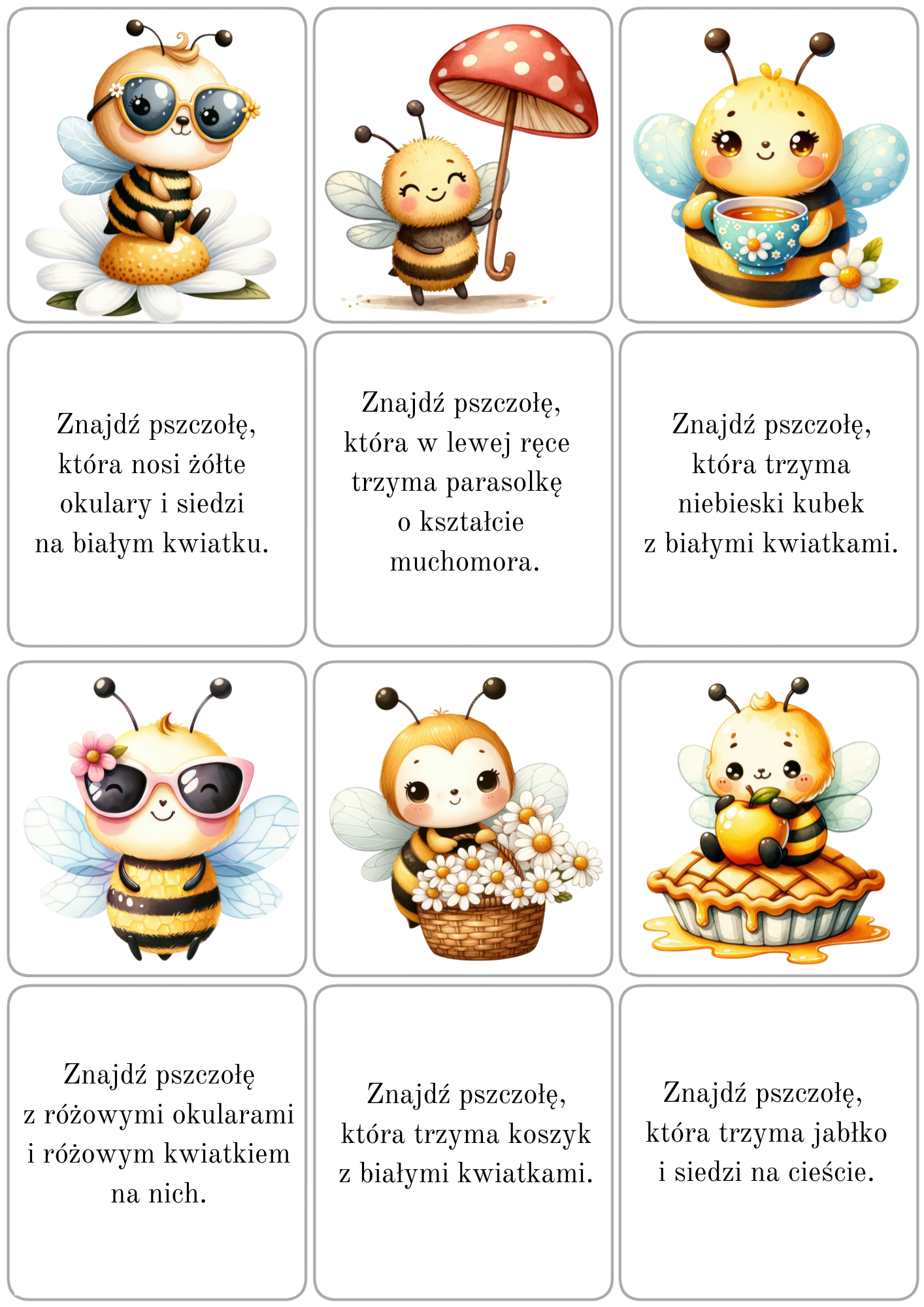 Znajdź Pszczołę - zabawa polega na przeczytaniu opisu misia i znalezieniu