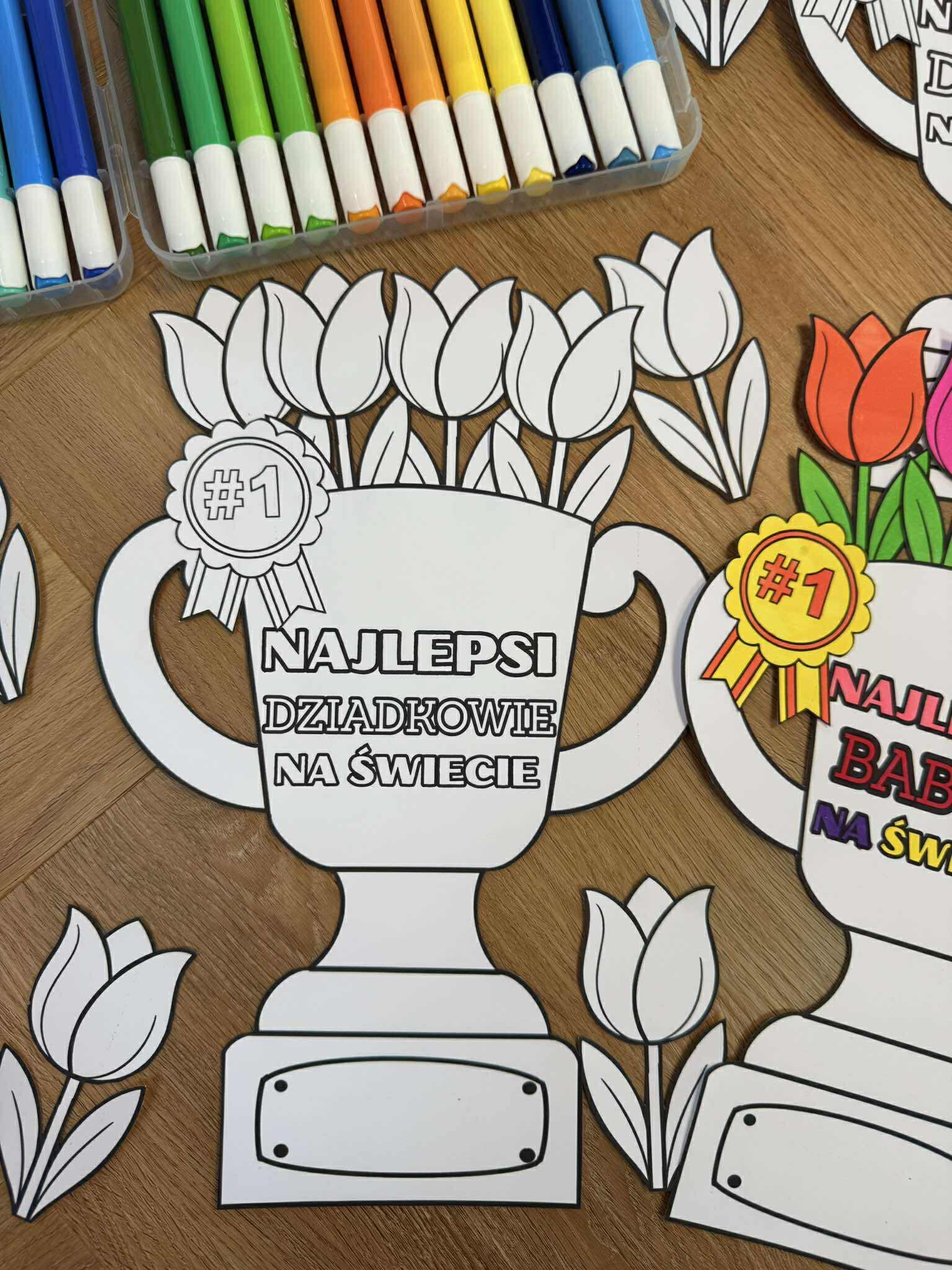 Puchary można wydrukować dwustronnie, a na dolnej tabliczce umieścić imiona dziadków.