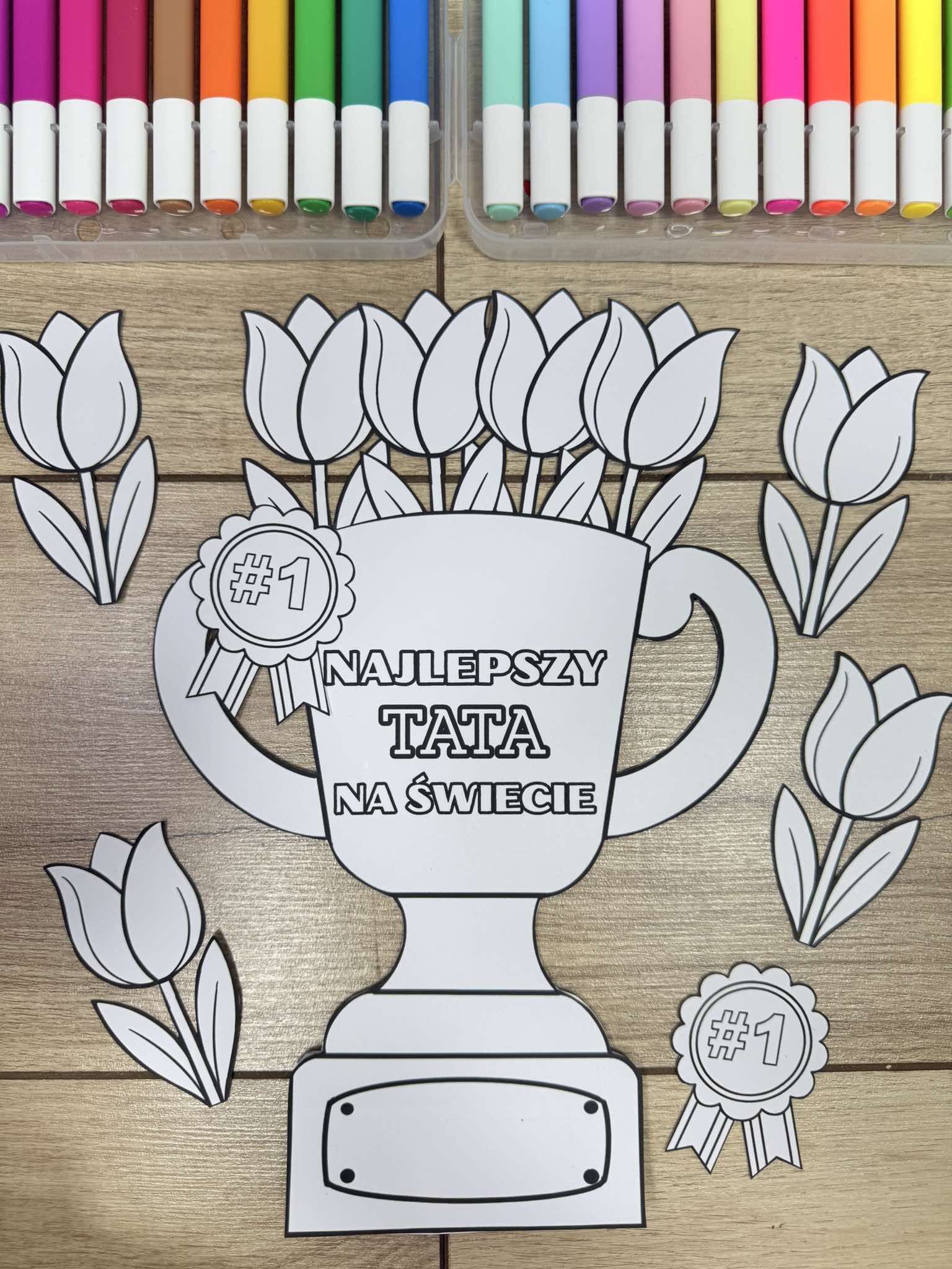 Puchary można wydrukować dwustronnie, a na dolnej tabliczce umieścić imiona rodziców.