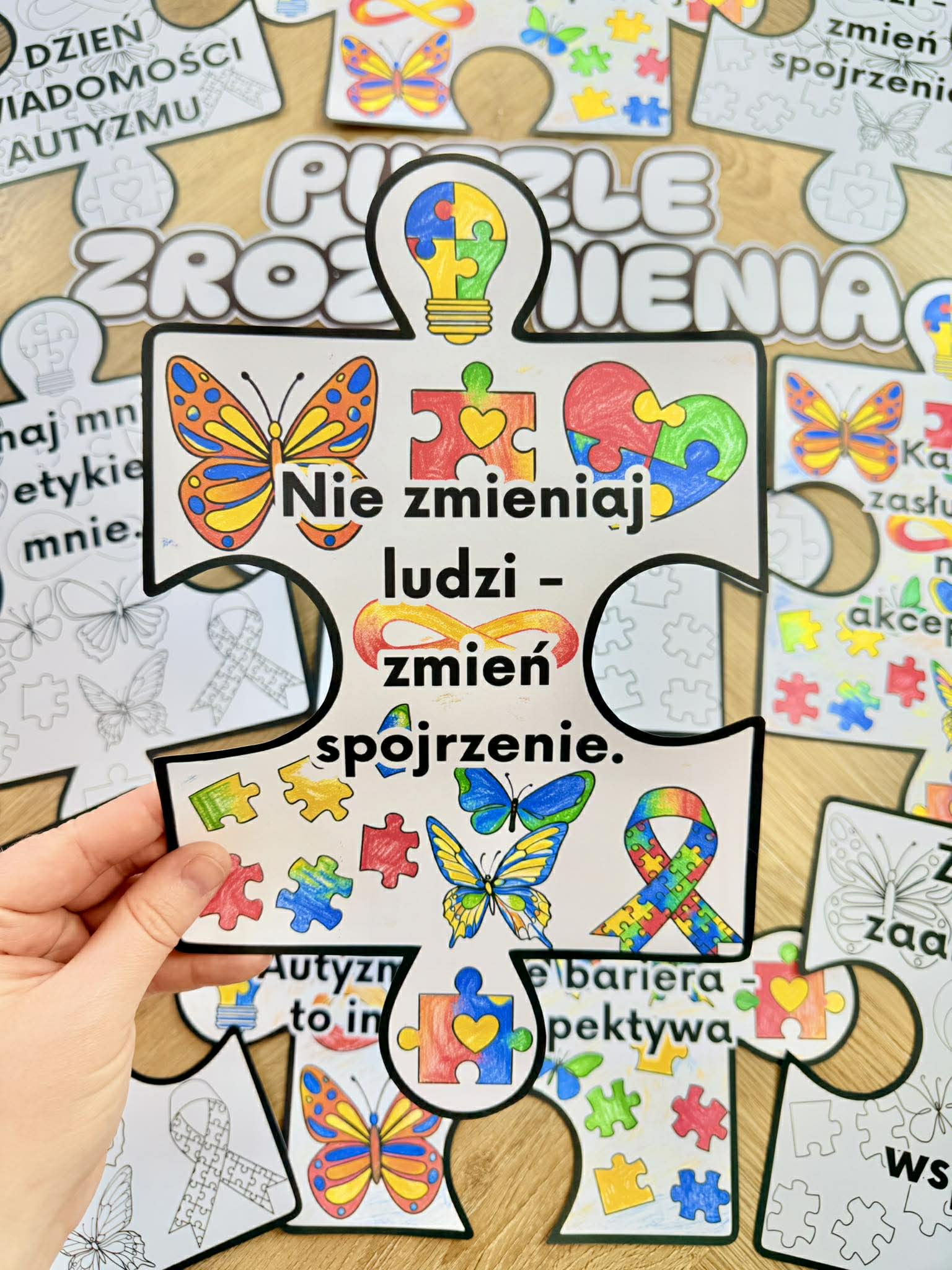 Puzzle z Hasłami do pokolorowania - Dzień Autyzmu