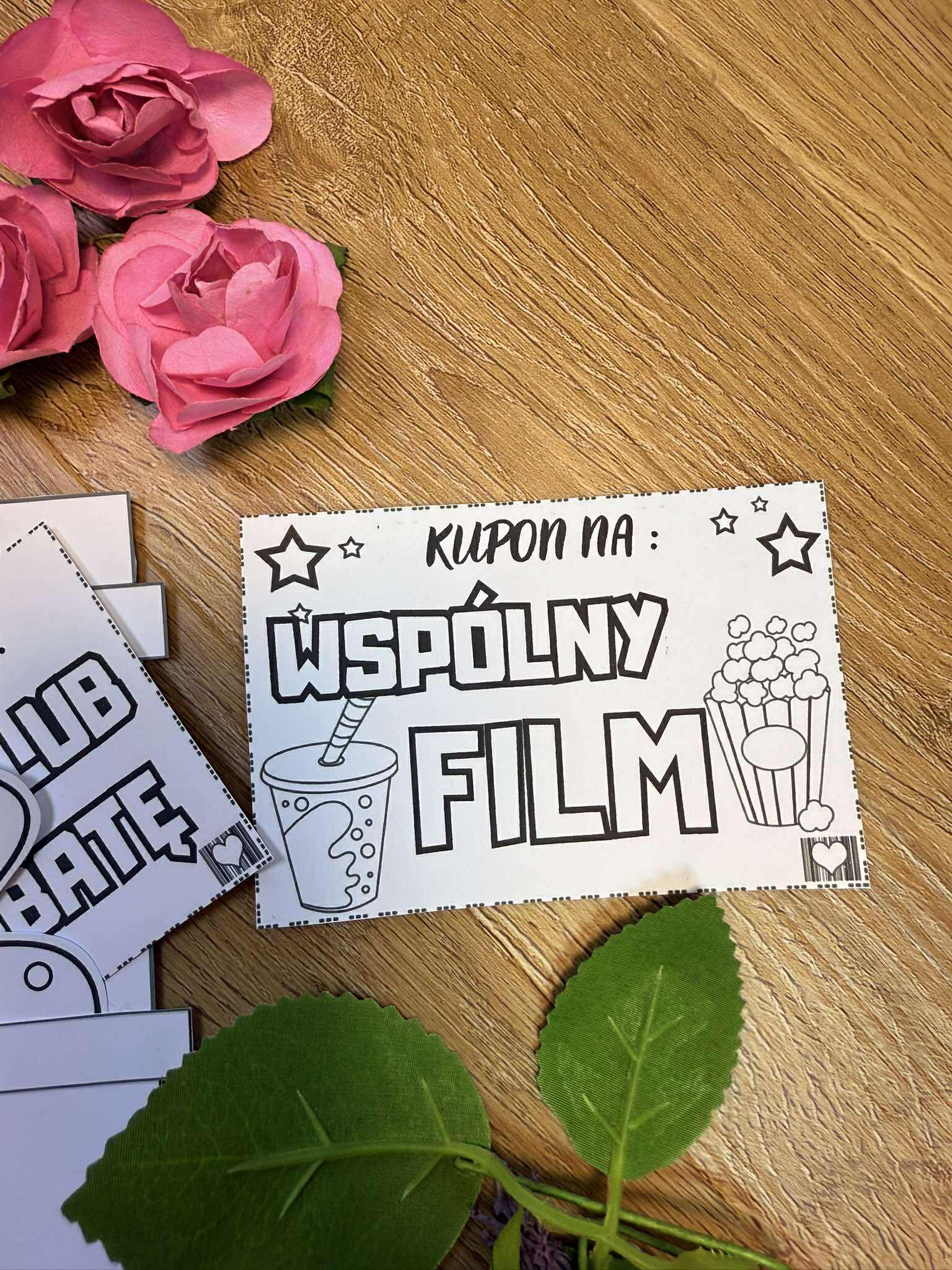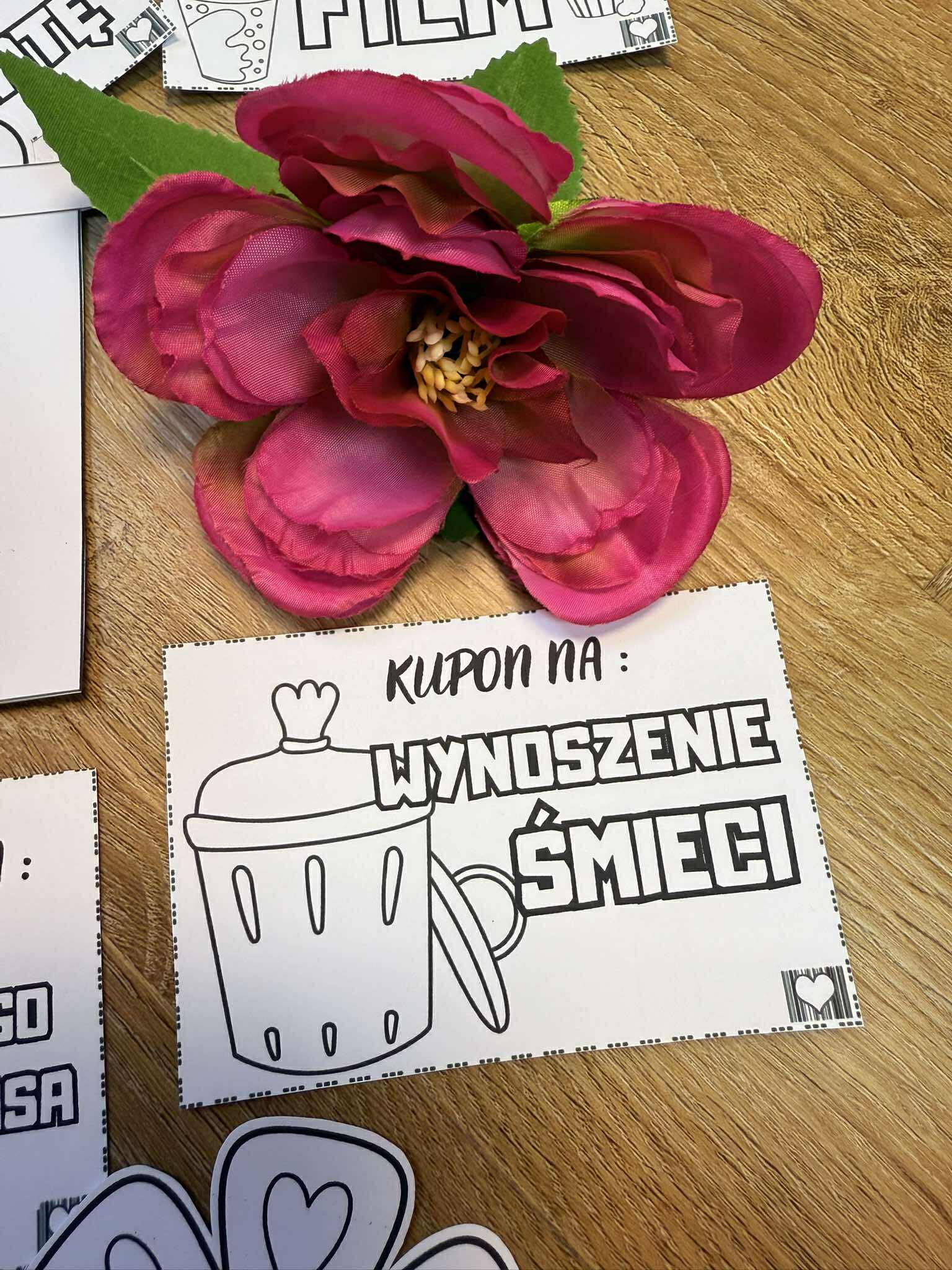 W pliku znajduje się szablon skrzynki oraz kwiatków i kuponów do pokolorowania.