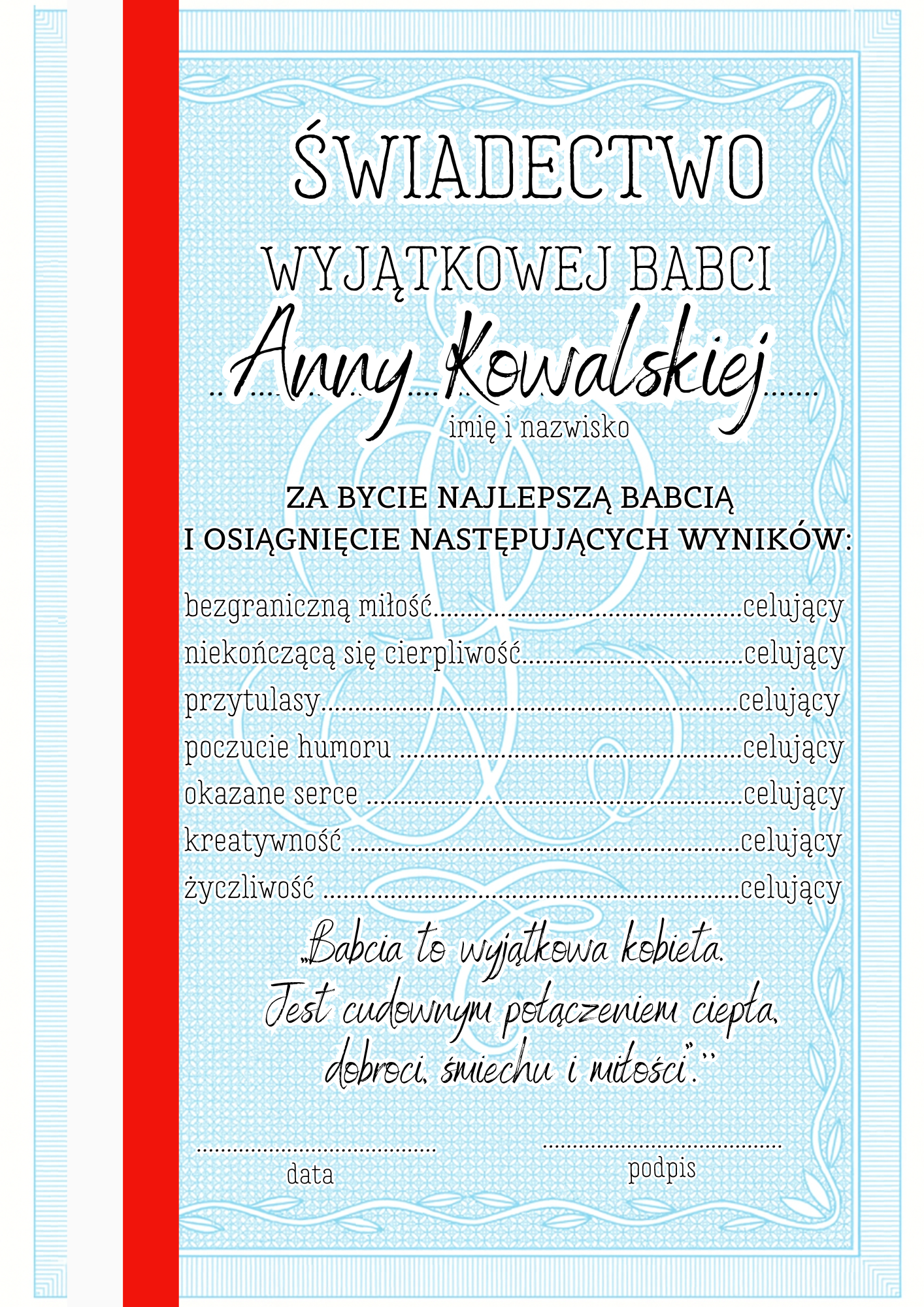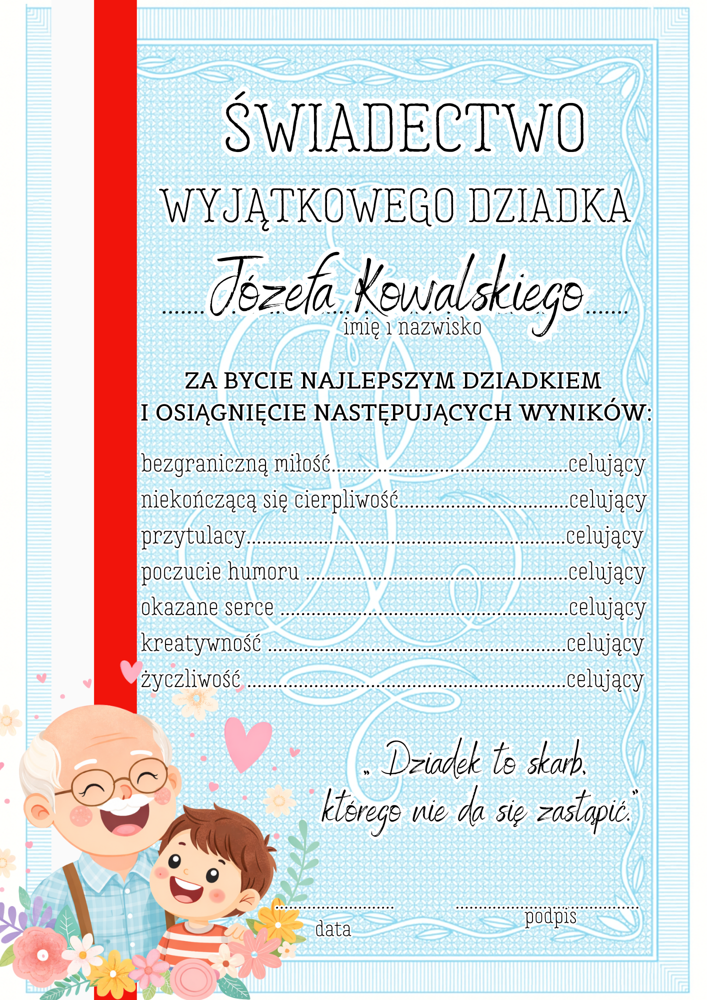Świadectwa z możliwością edycji - Dzień Babci i Dziadka