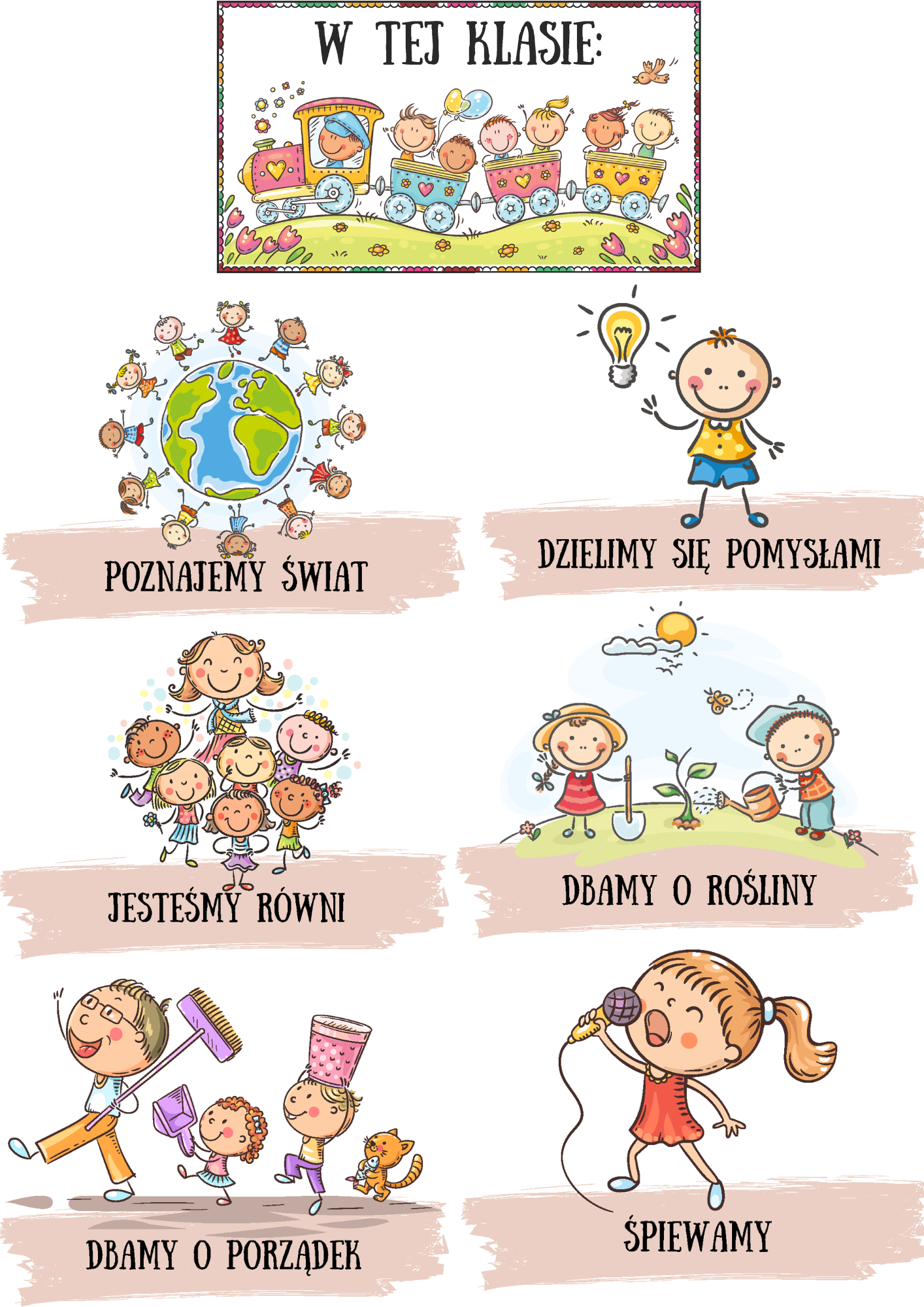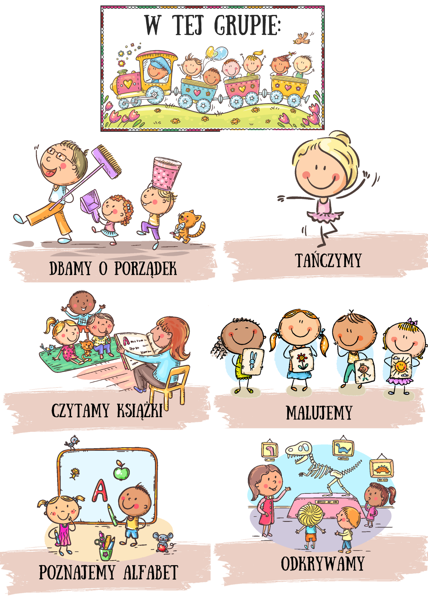 W tej sali/ grupie/ klasie / świetlicy- ilustracje z różnymi