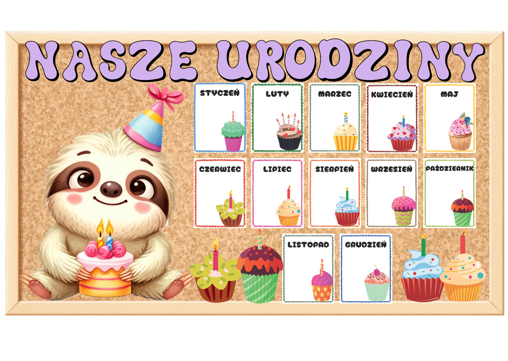 Urodziny- Leniwce- Grupowy Kalendarz z możliwością edycji