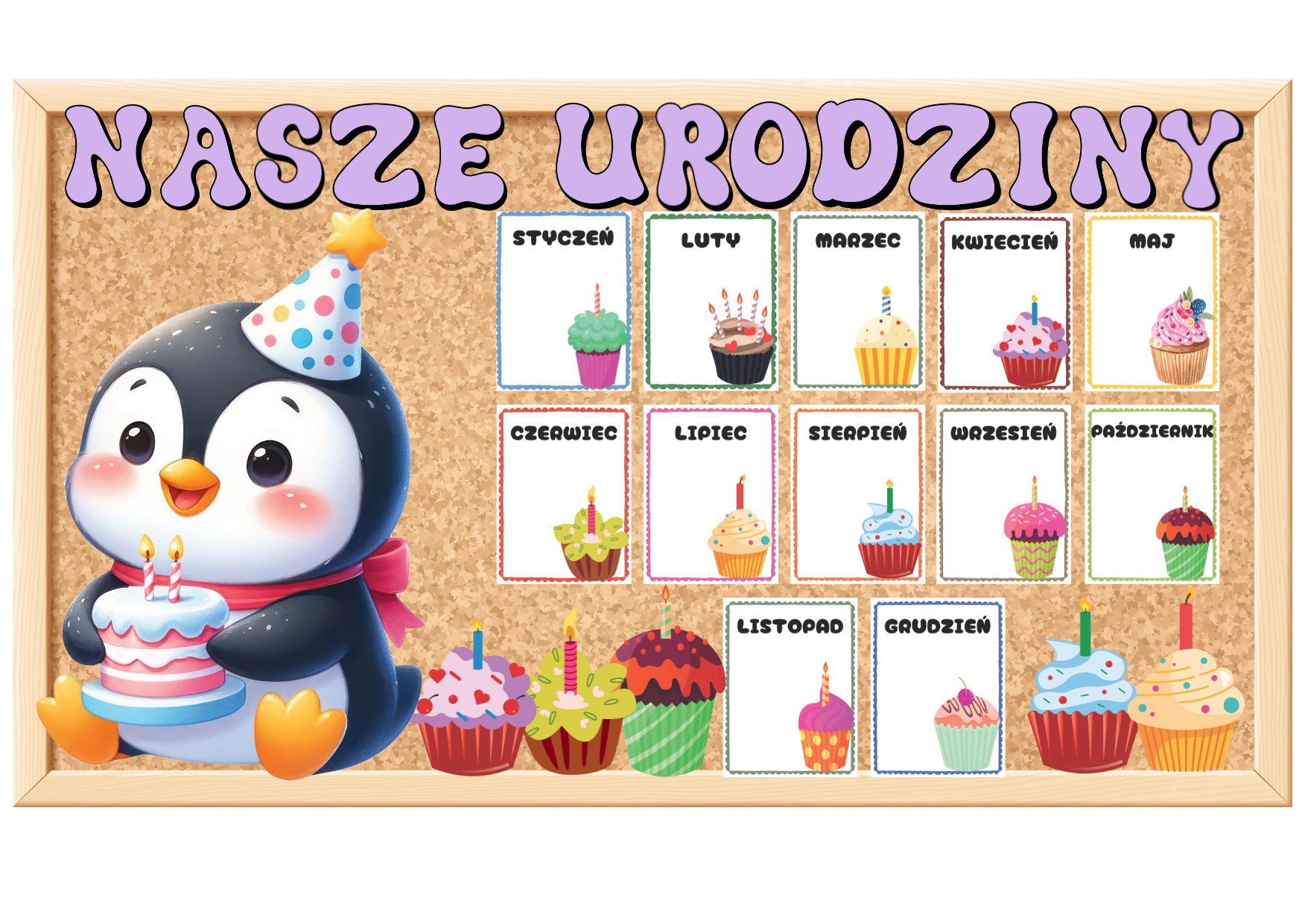 Urodziny- Pingwiny- Grupowy Kalendarz z możliwością edycji