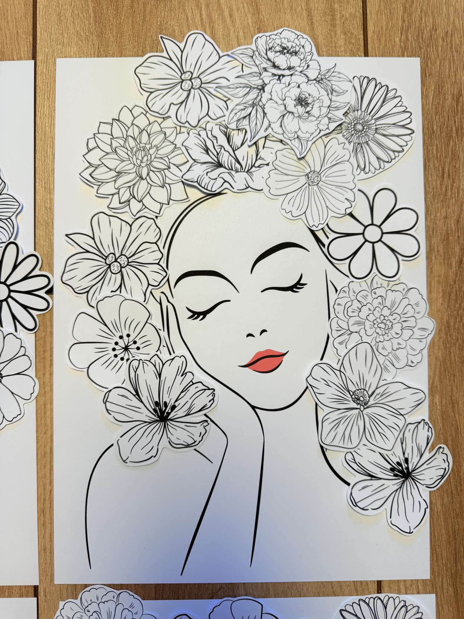 W pliku znajdują się różne szablony portretów do wyboru oraz biało-czarne kwiatki.