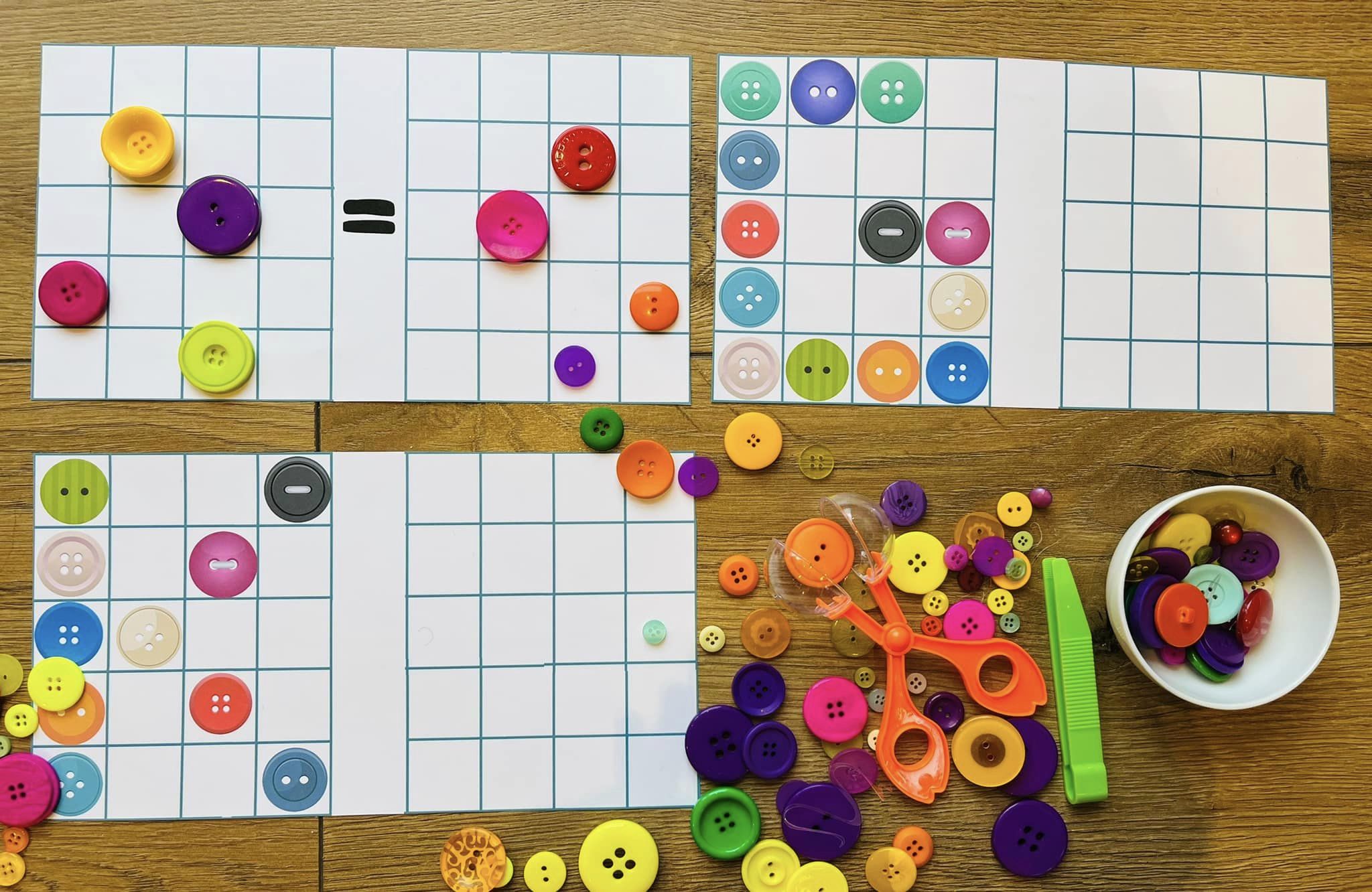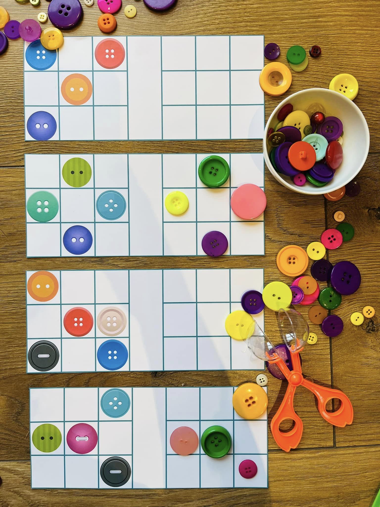 Do zabawy można wykorzystać również prawdziwe guzki, ale dla tych którzy ich nie mają dołączyłam kwadraciki do wycięcia.