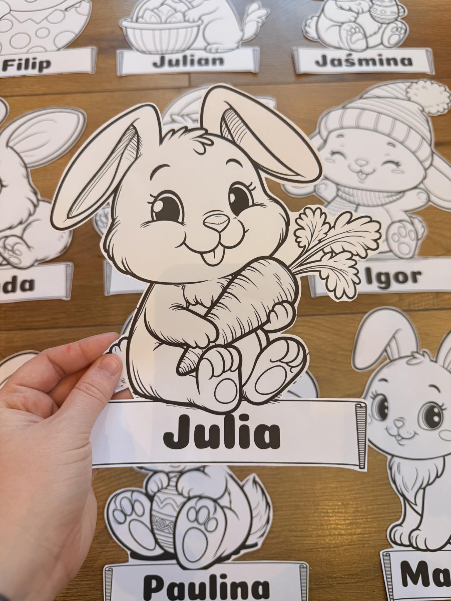 Wielkanoc- Zajączki z możliwością edycji imion. (Word)