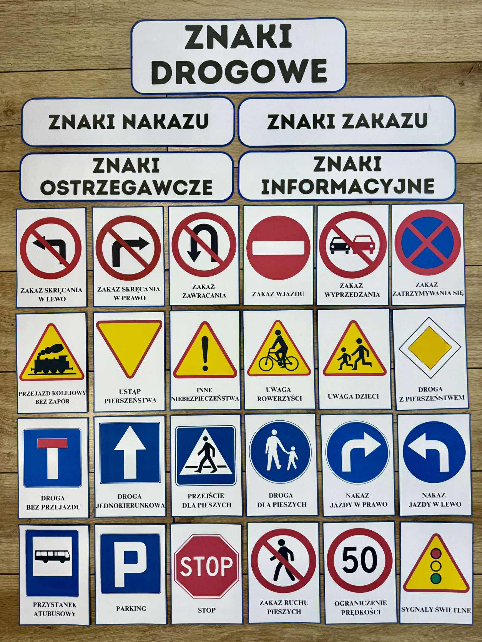 Znaki Drogowe - Plansze z ilustracjami i napisami