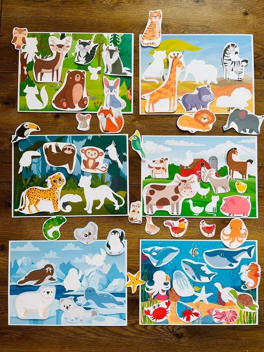 Dzień Zwierząt/ Zwierzęta - plansze z dopasowywaniem zwierzątek do odpowiedniego miejsca.
